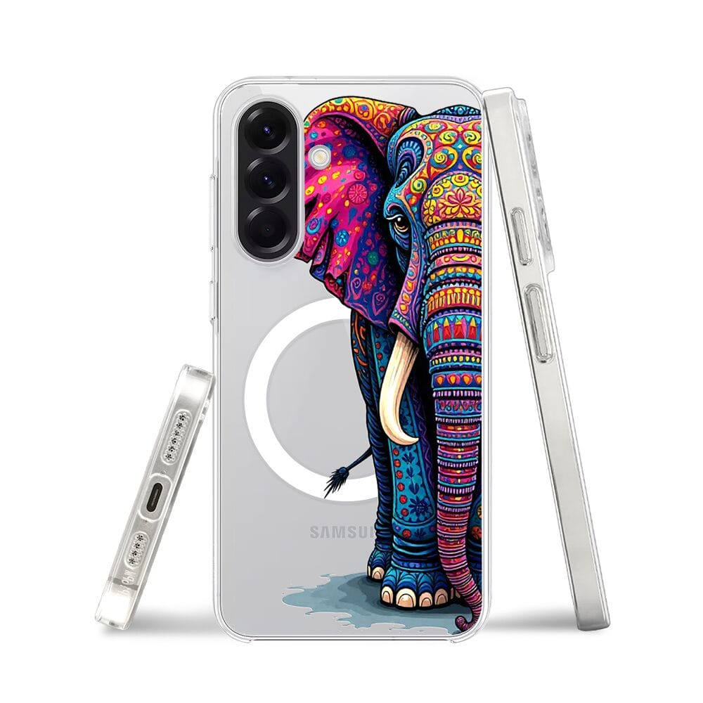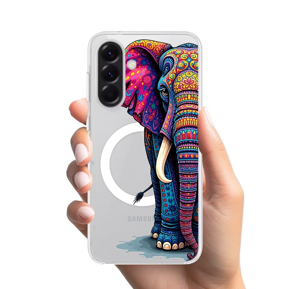 Etui do Samsung Galaxy A56 5G z MagSafe przeźroczyste, silikonowe Flexi, Dzika Mandala, Słoń