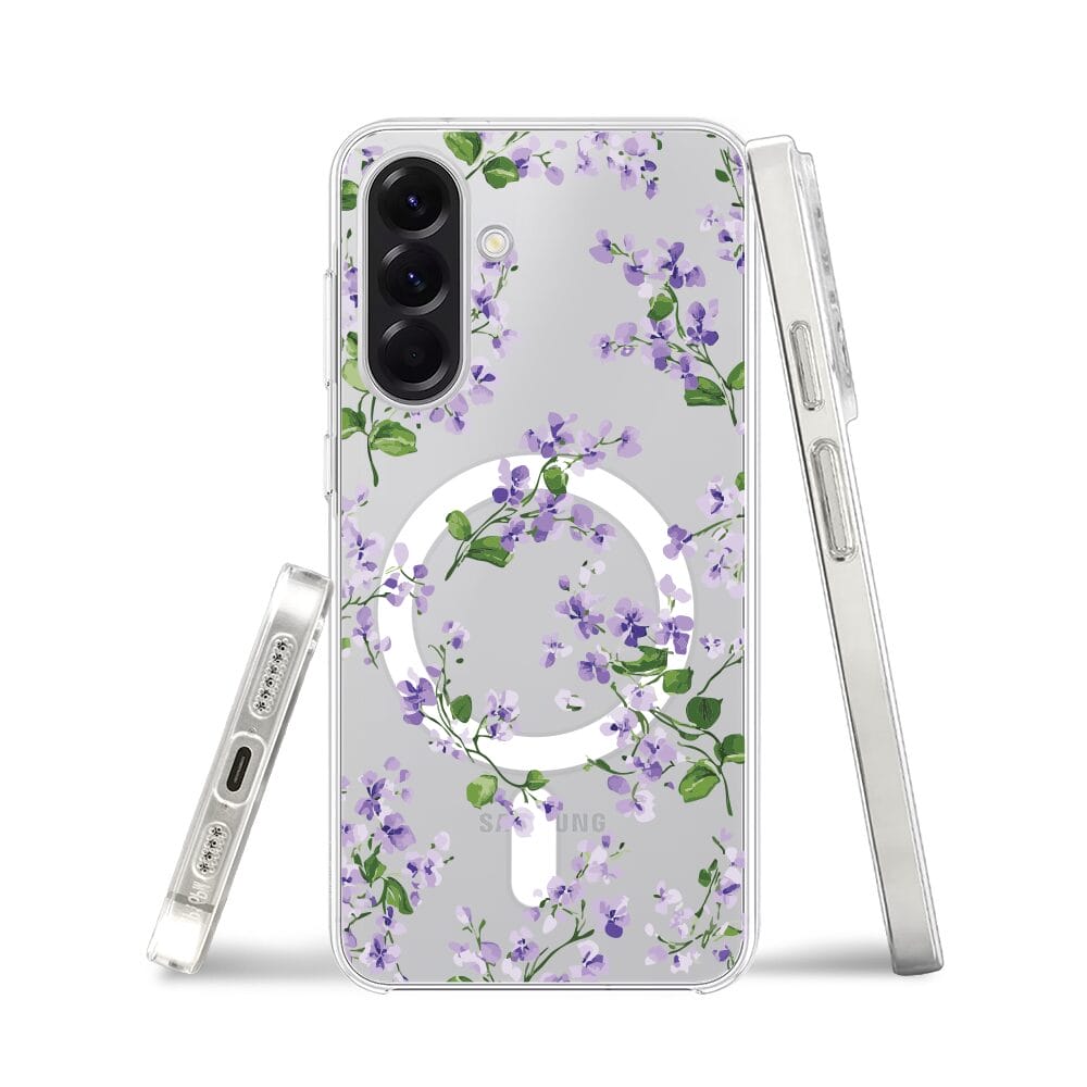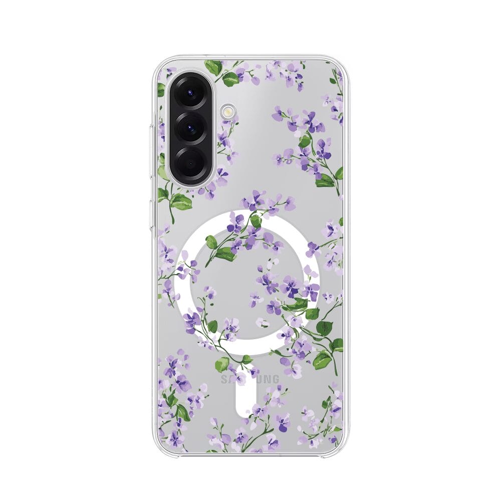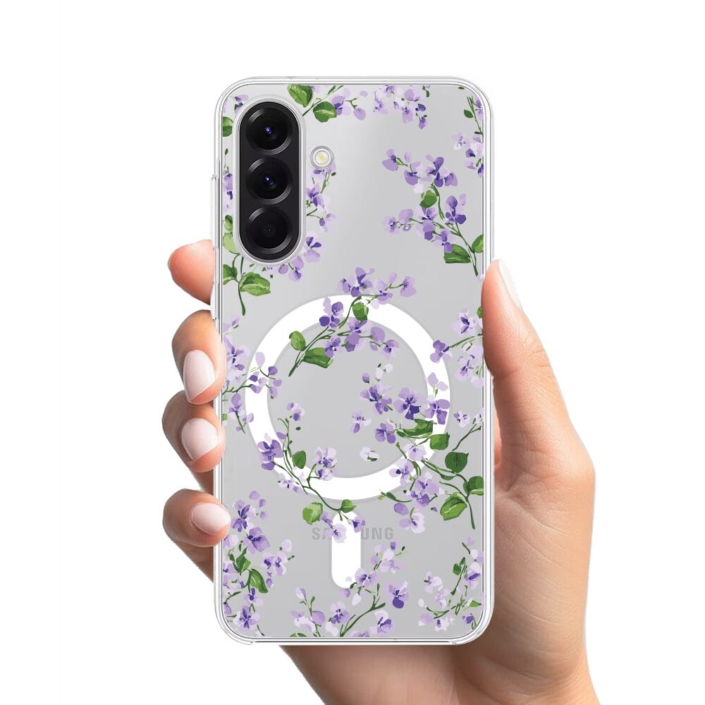 Etui do Samsung Galaxy A56 5G z MagSafe przeźroczyste, silikonowe Flexi, Fioletowe Bratki
