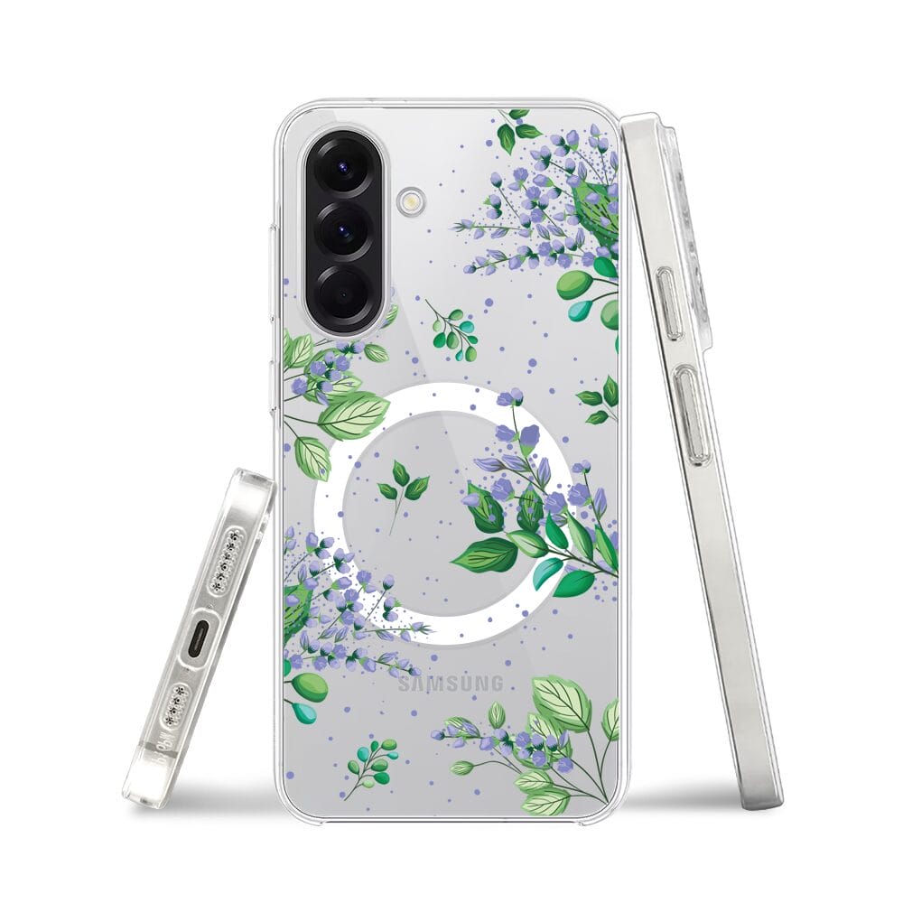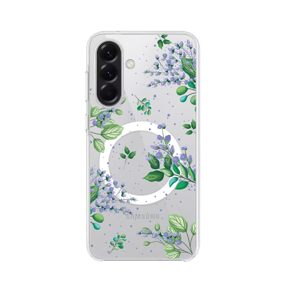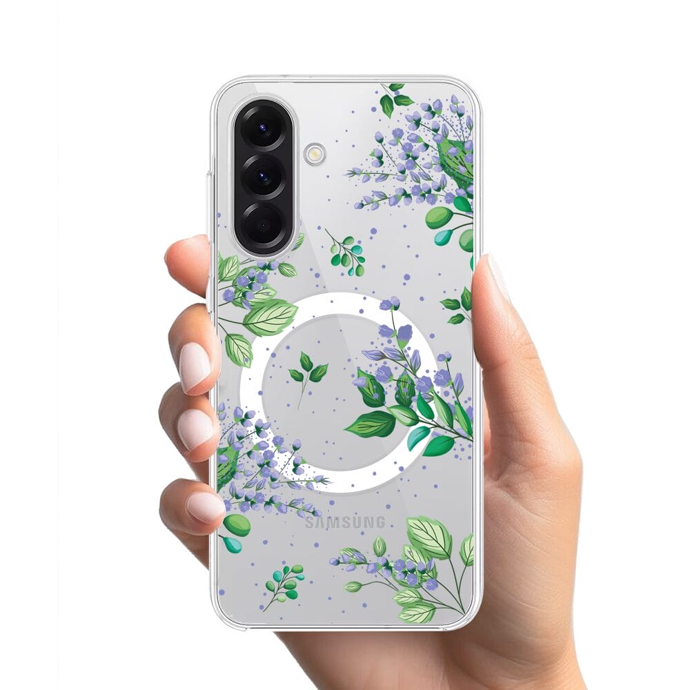 Etui do Samsung Galaxy A56 5G z MagSafe przeźroczyste, silikonowe Flexi, fioletowe kwiatki