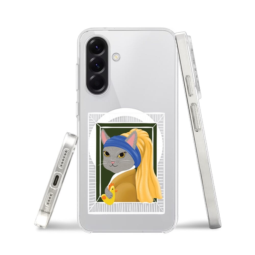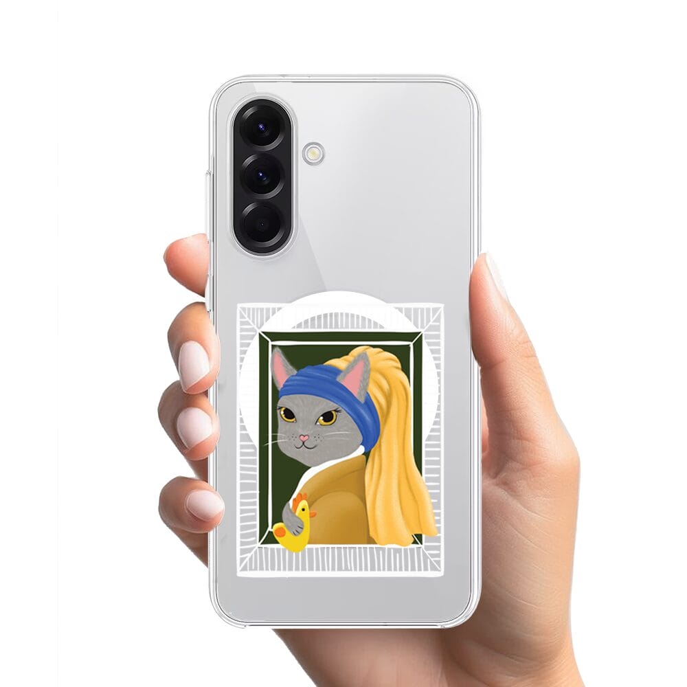 Etui do Samsung Galaxy A56 5G z MagSafe przeźroczyste, silikonowe Flexi, kotek z kurczakiem