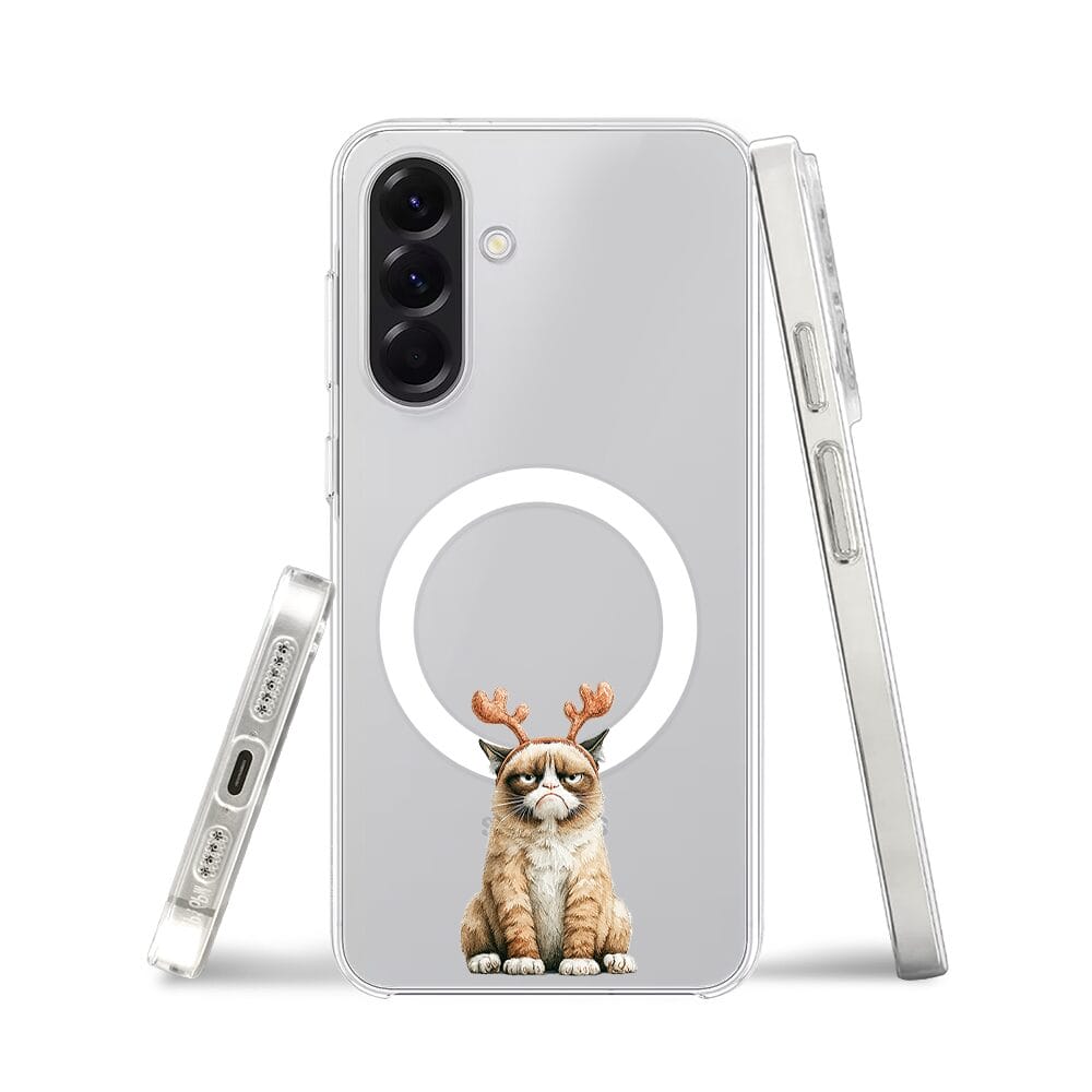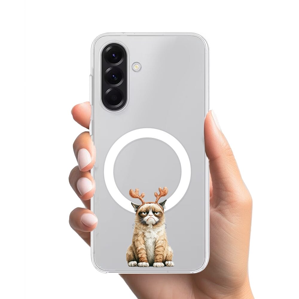 Etui do Samsung Galaxy A56 5G z MagSafe przeźroczyste, silikonowe Flexi, Przytulne święta, Kot który nie chciał być reniferem