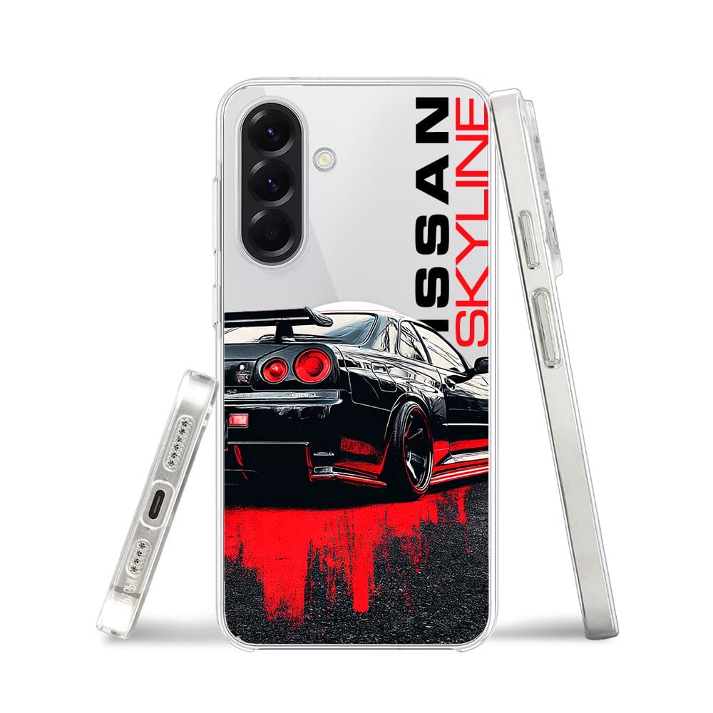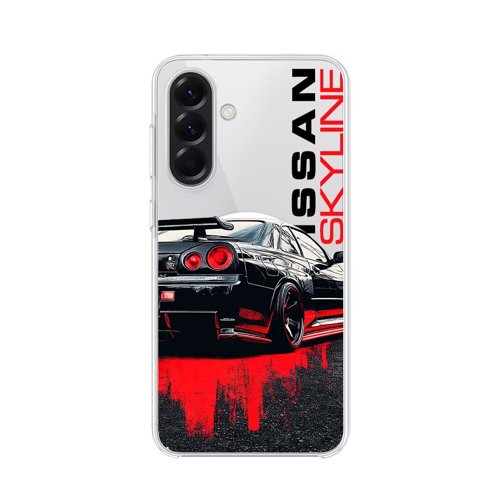Etui do Samsung Galaxy A56 5G z MagSafe przeźroczyste, silikonowe Flexi, Szybkie Auta, czarny Skyline