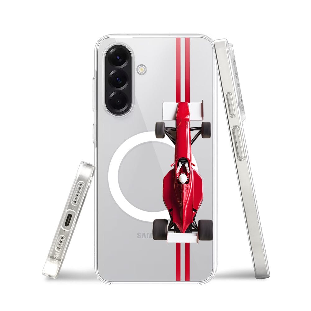Etui do Samsung Galaxy A56 5G z MagSafe przeźroczyste, silikonowe Flexi, Szybkie Auta, czerwone F1