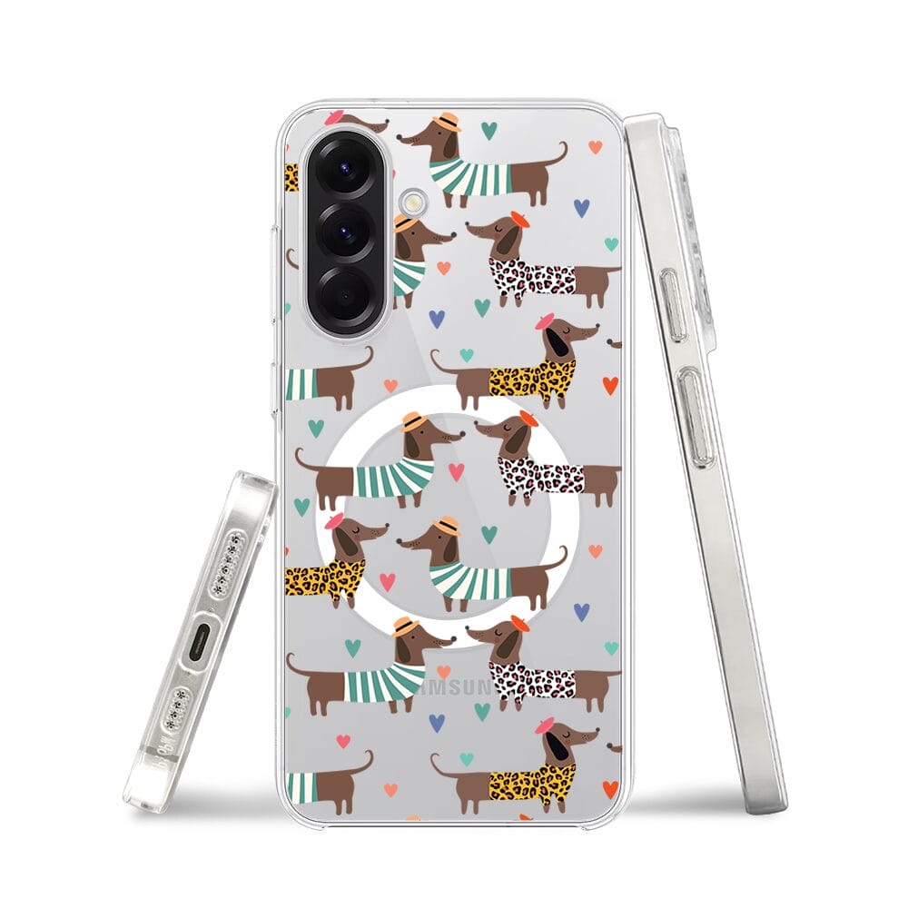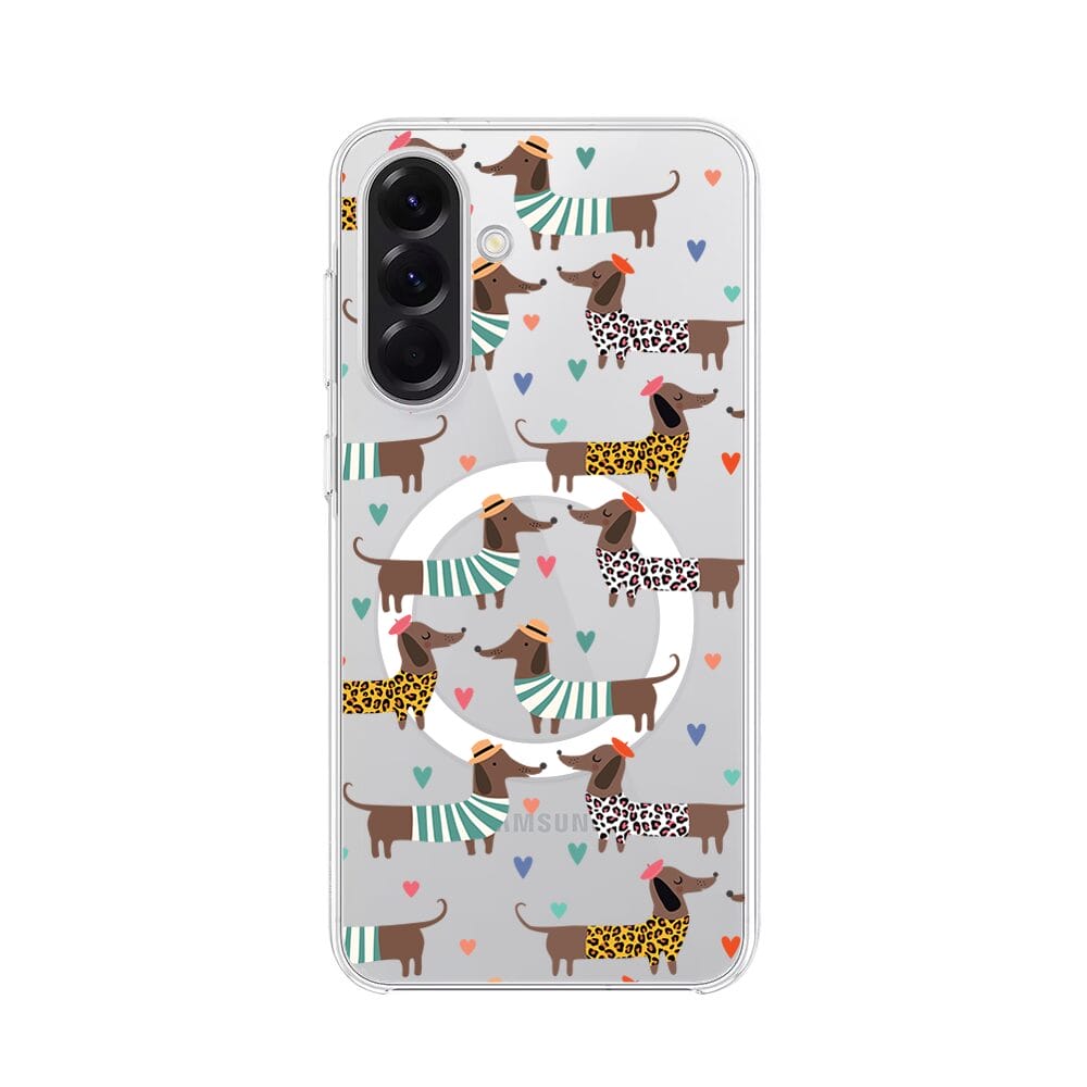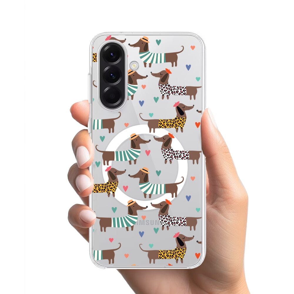 Etui do Samsung Galaxy A56 5G z MagSafe przeźroczyste, silikonowe Flexi, zakochane jamniki