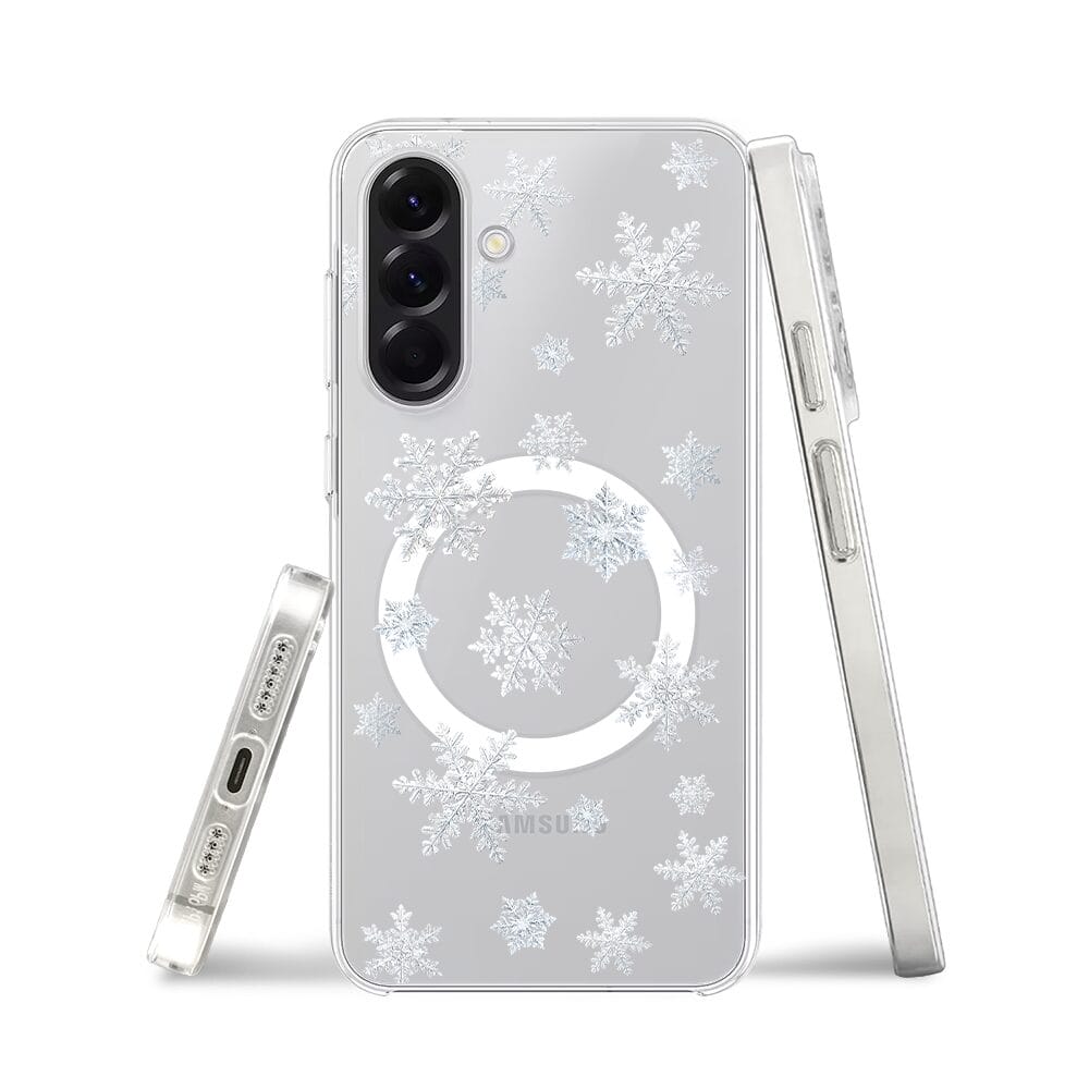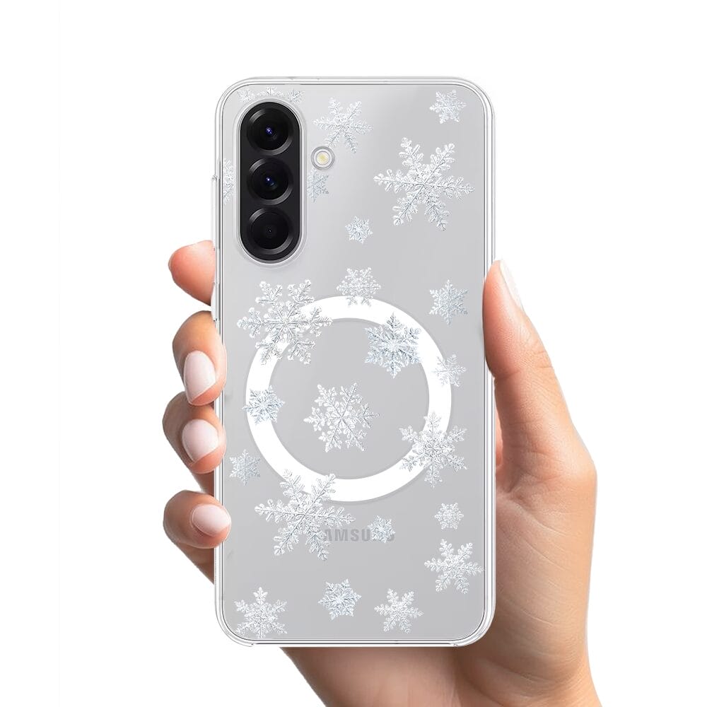 Etui do Samsung Galaxy A56 5G z MagSafe przeźroczyste, silikonowe Flexi, Zimowa magia, Delikatne płatki śniegu