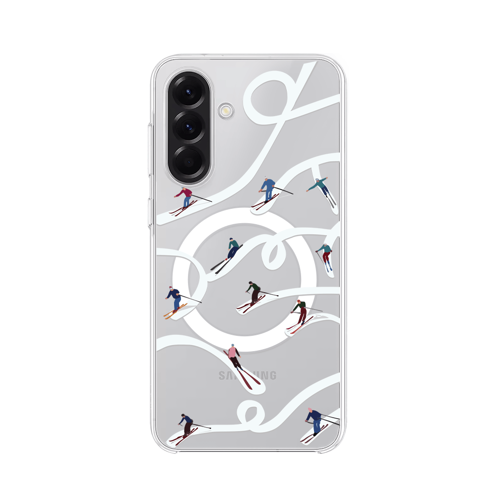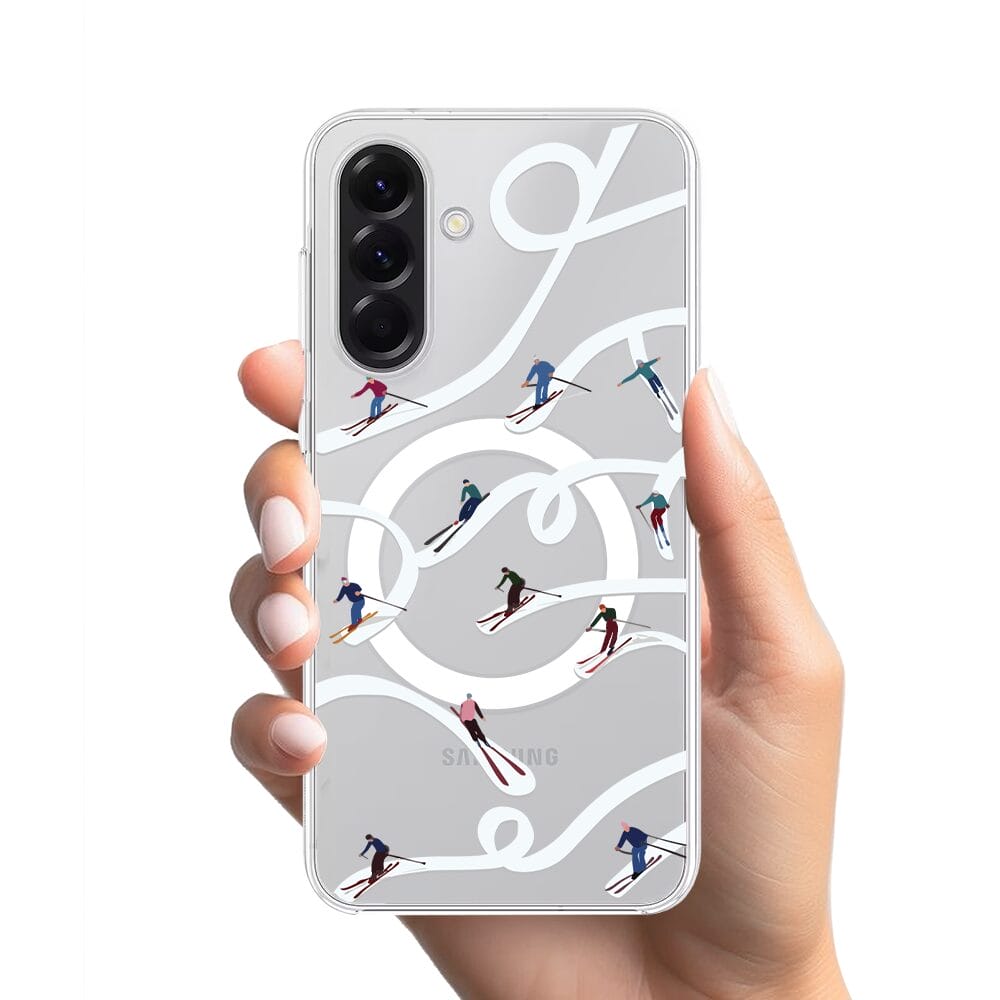 Etui do Samsung Galaxy A56 5G z MagSafe przeźroczyste, silikonowe Flexi, Zimowa magia, Narciarskie wiraże