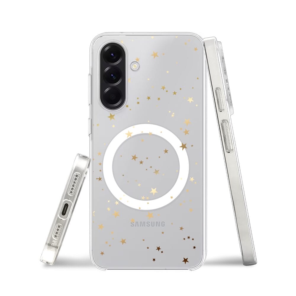 Etui do Samsung Galaxy A56 5G z MagSafe przeźroczyste, silikonowe Flexi, Zimowa magia, Złote gwiazdki