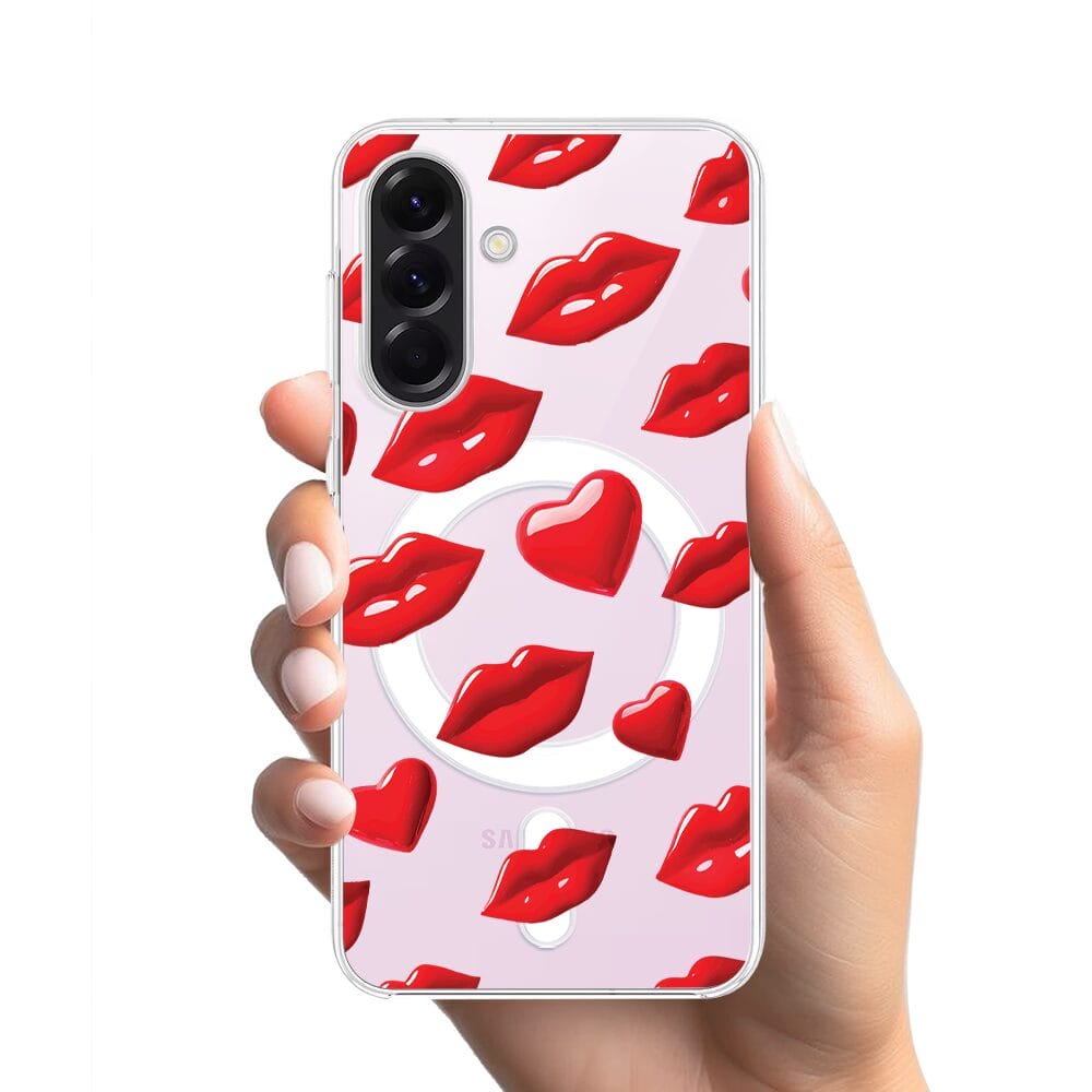 Etui do Samsung Galaxy A57 z MagSafe przeźroczyste, silikonowe Flexi, czerwone usta