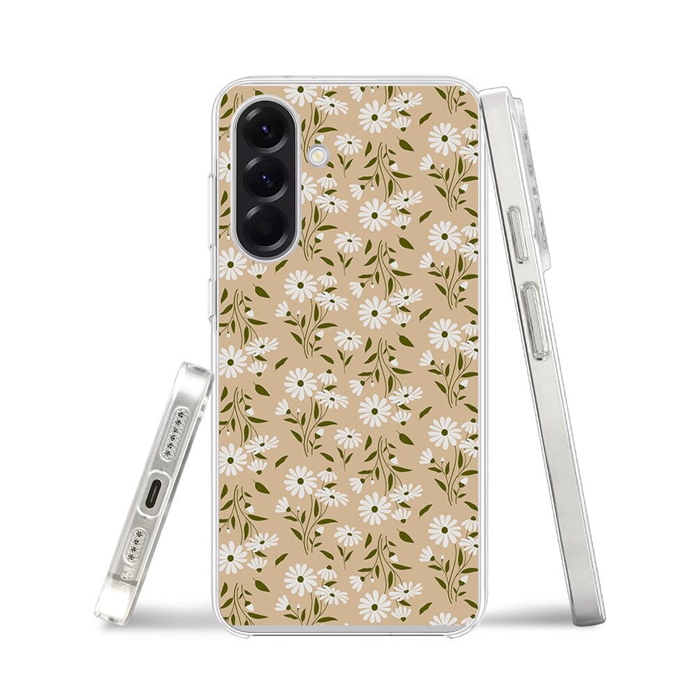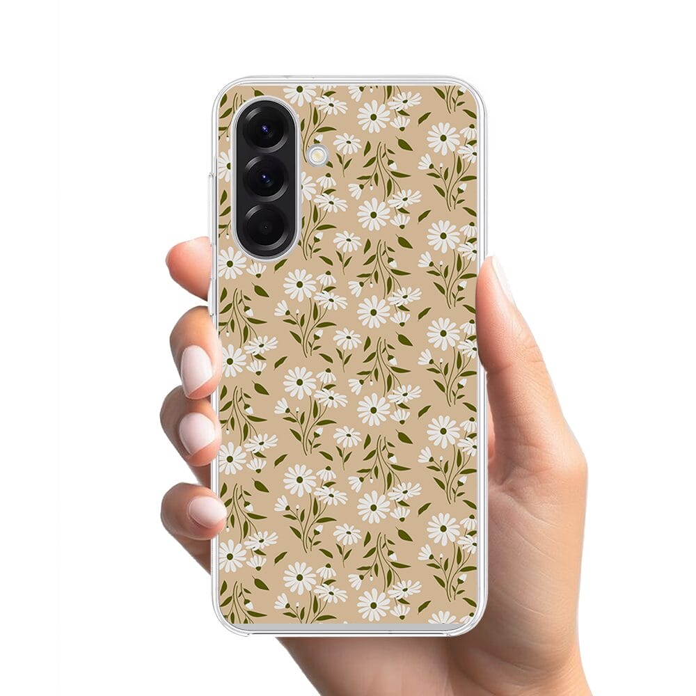 Etui do Samsung Galaxy A57 z MagSafe przeźroczyste, silikonowe Flexi, delikatne kwiatki na cielistym tle