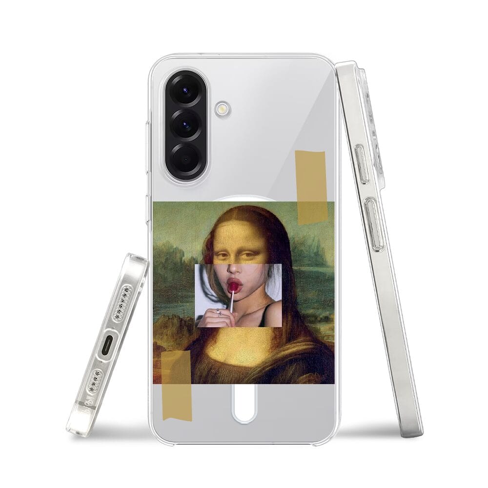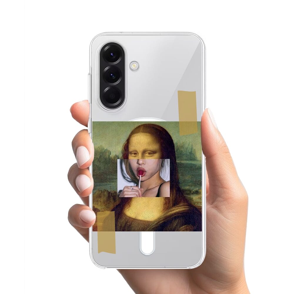 Etui do Samsung Galaxy A57 z MagSafe przeźroczyste, silikonowe Flexi, Mona Lisa z lizakiem