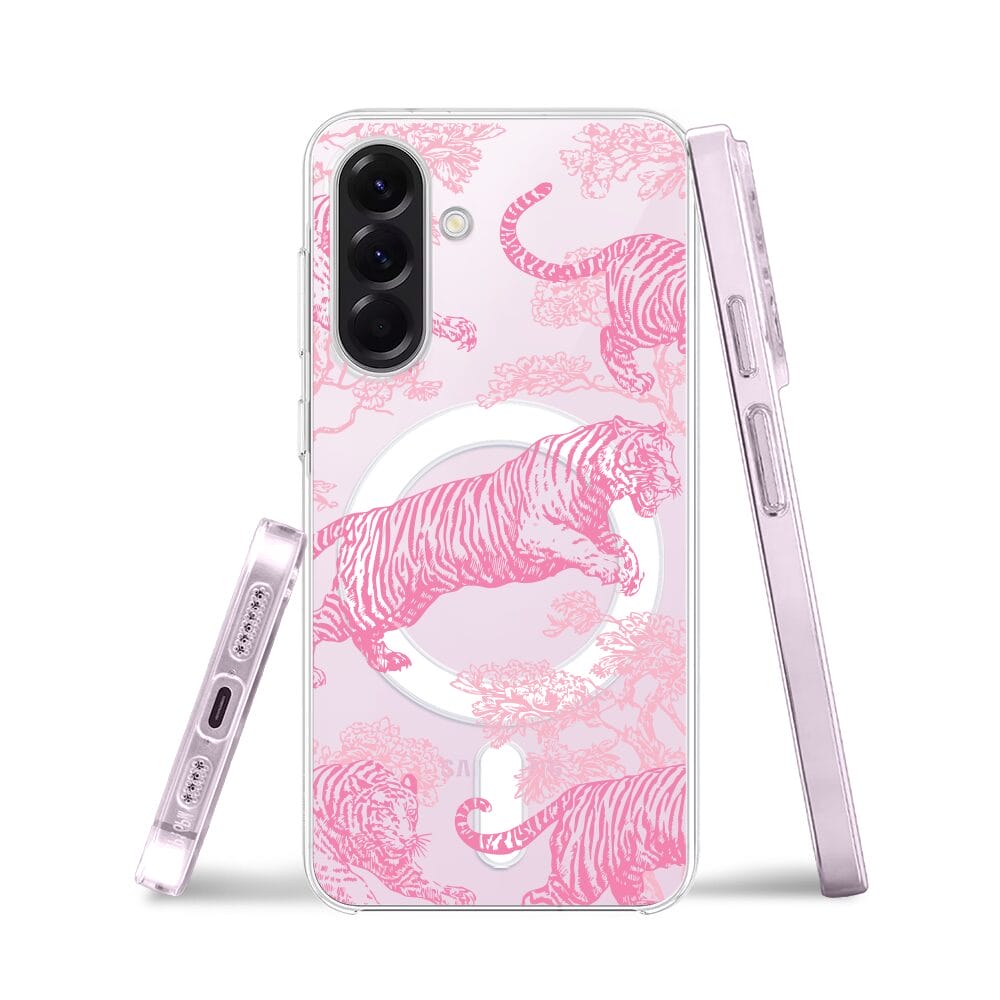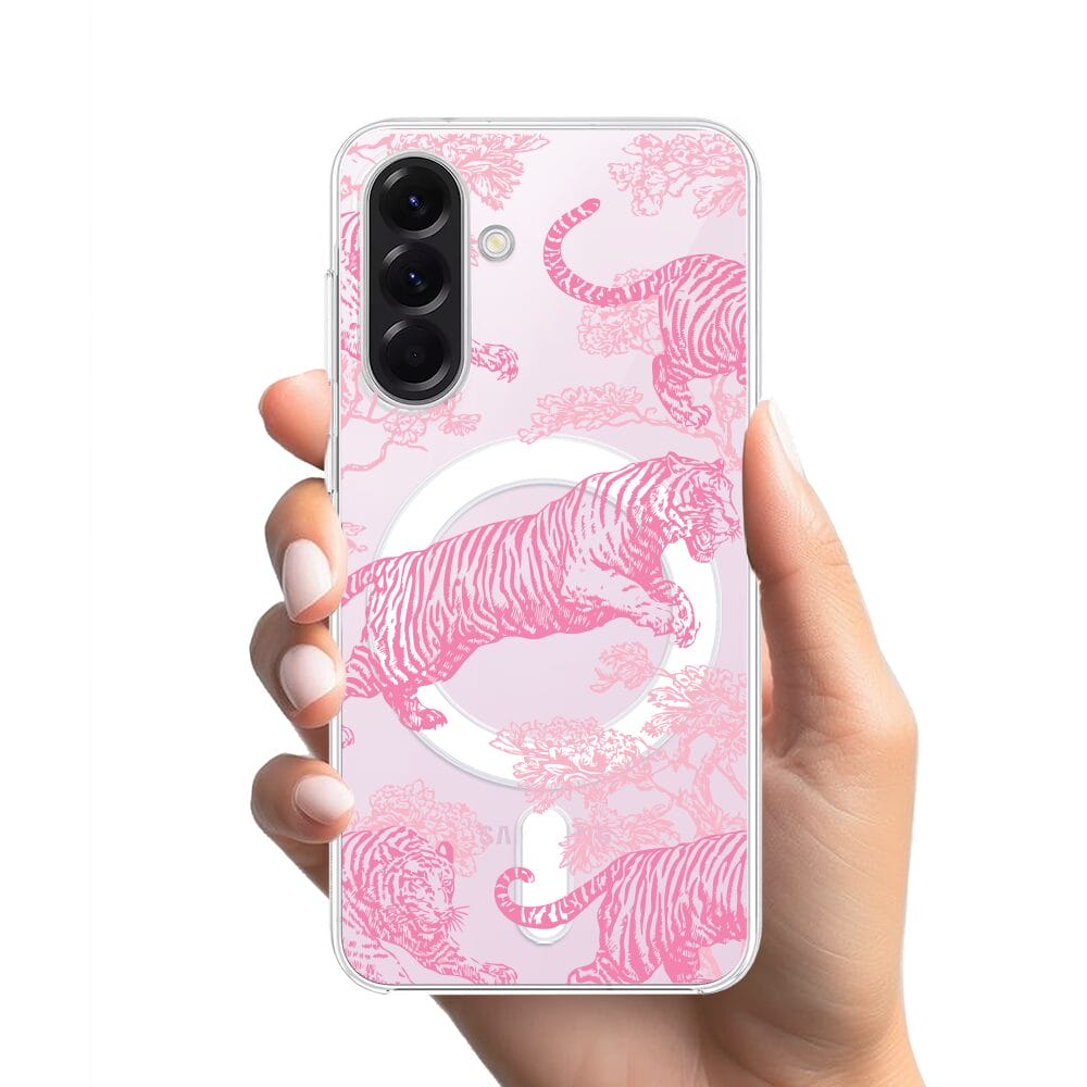 Etui do Samsung Galaxy A57 z MagSafe przeźroczyste, silikonowe Flexi, Mystic, Różowe tygrysy