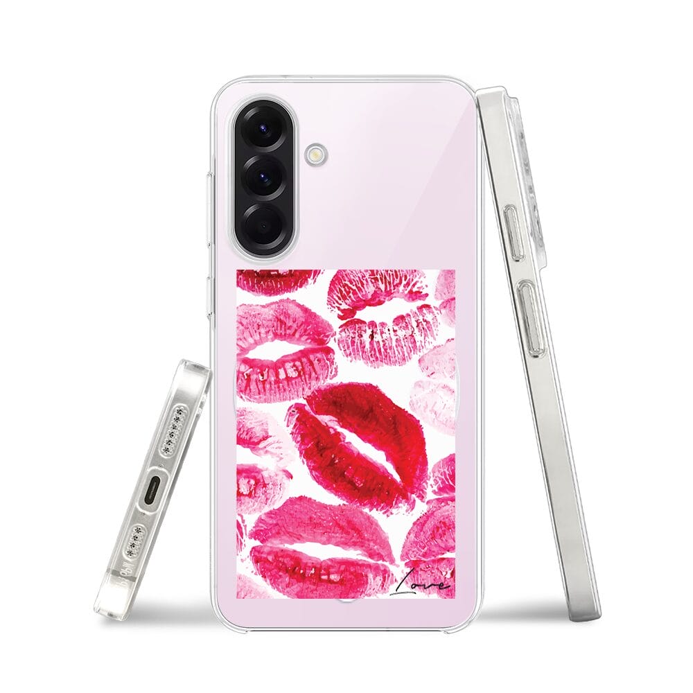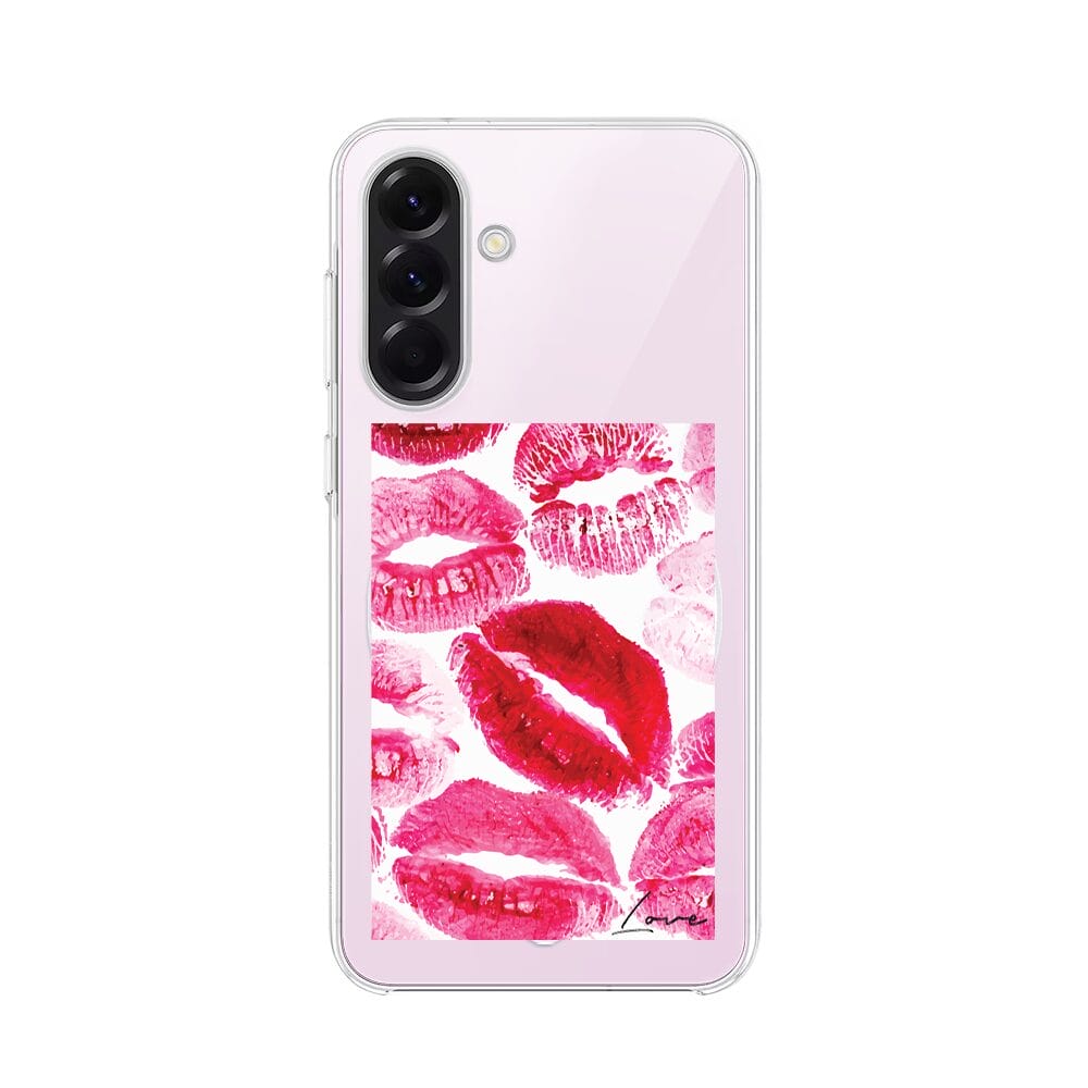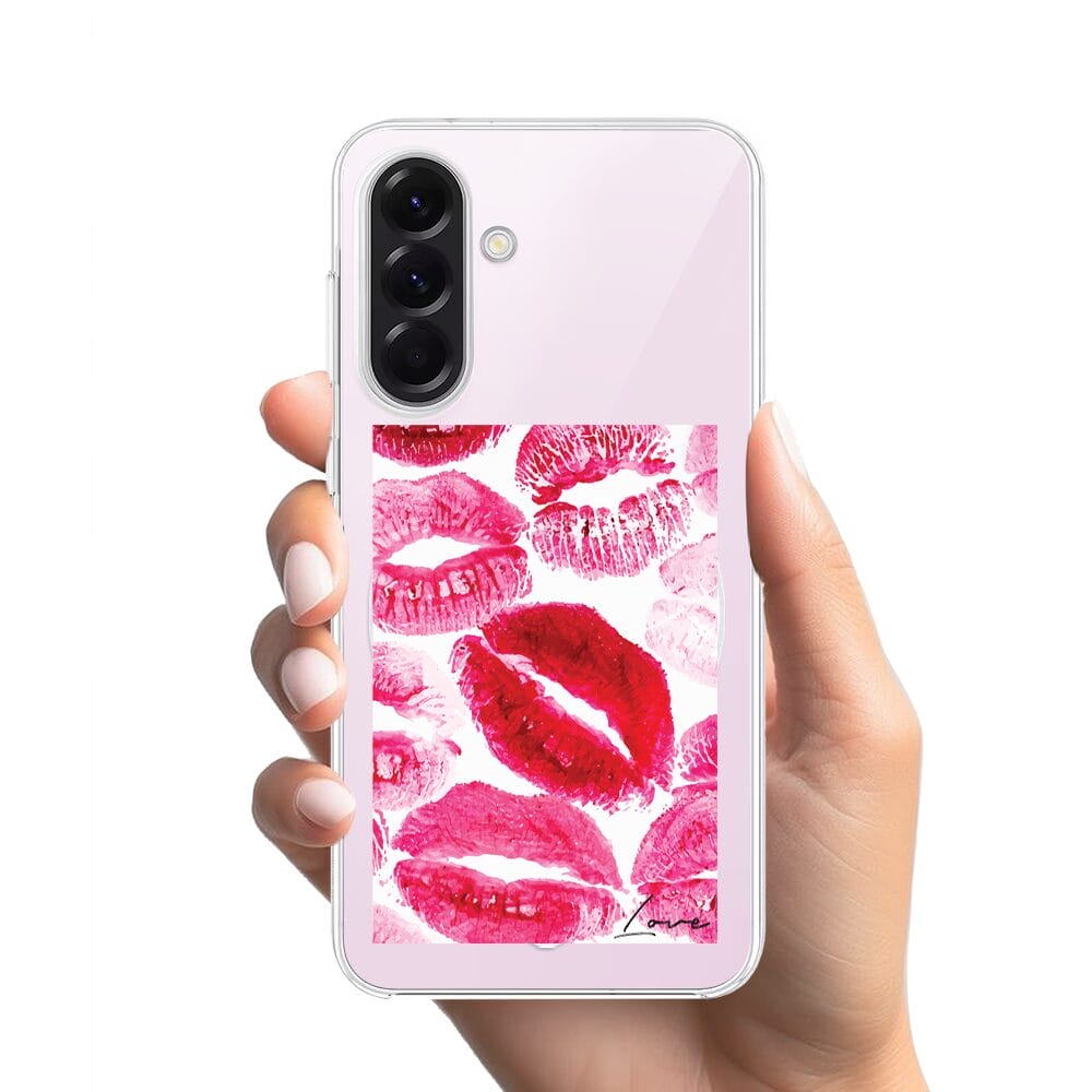 Etui do Samsung Galaxy A57 z MagSafe przeźroczyste, silikonowe Flexi, pocałunki z napisem „love”