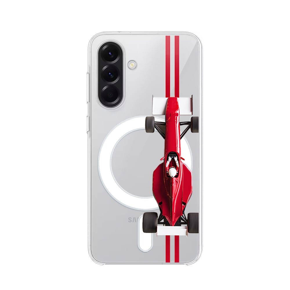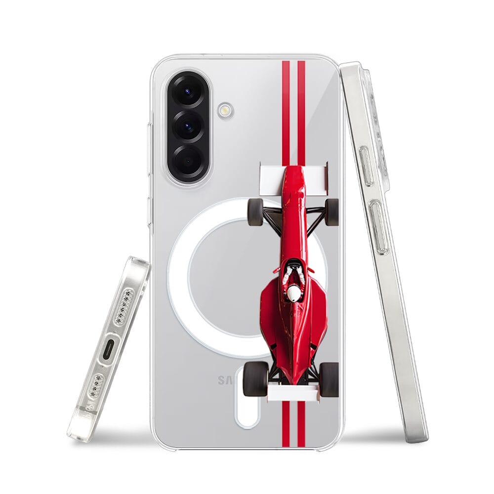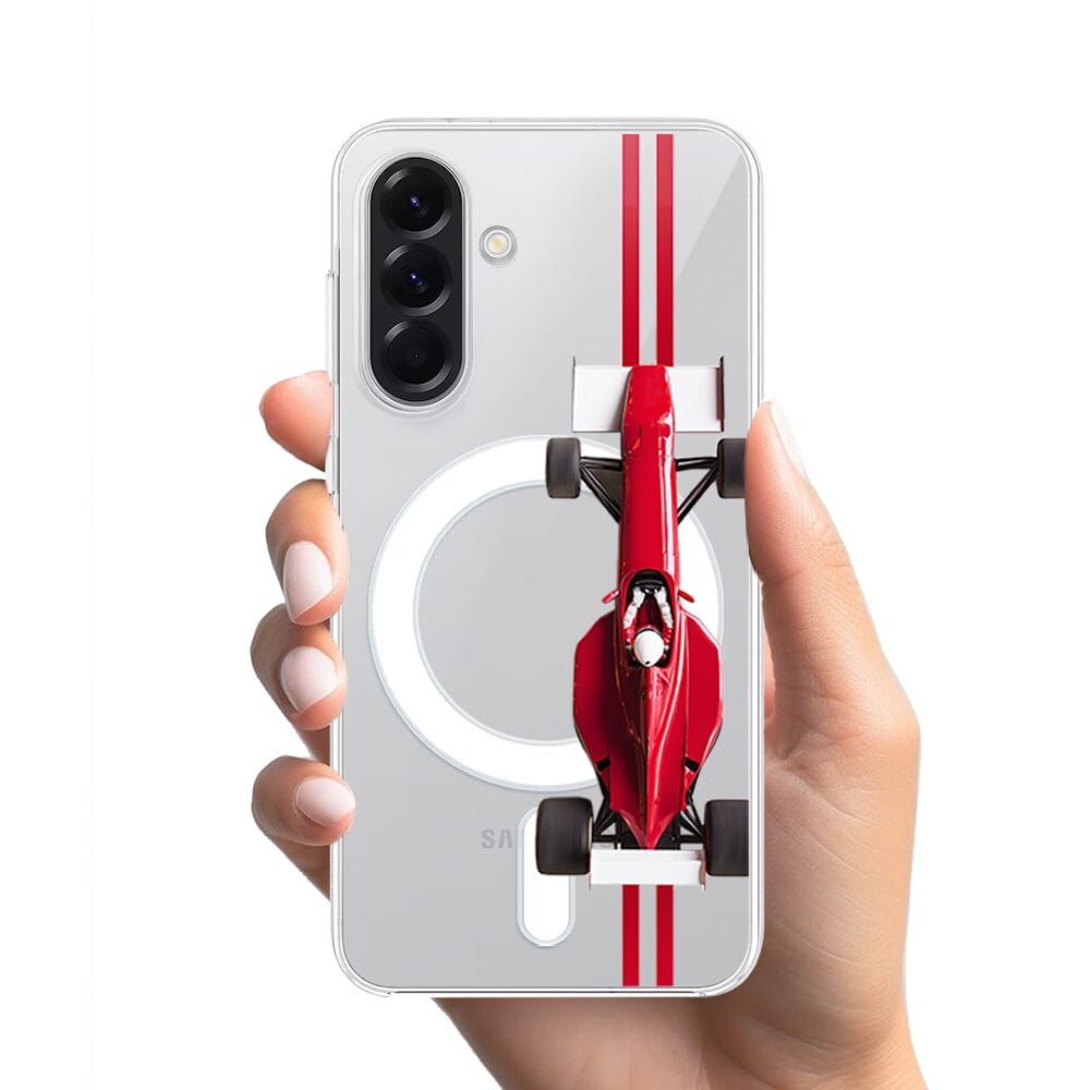 Etui do Samsung Galaxy A57 z MagSafe przeźroczyste, silikonowe Flexi, Szybkie Auta, czerwone F1