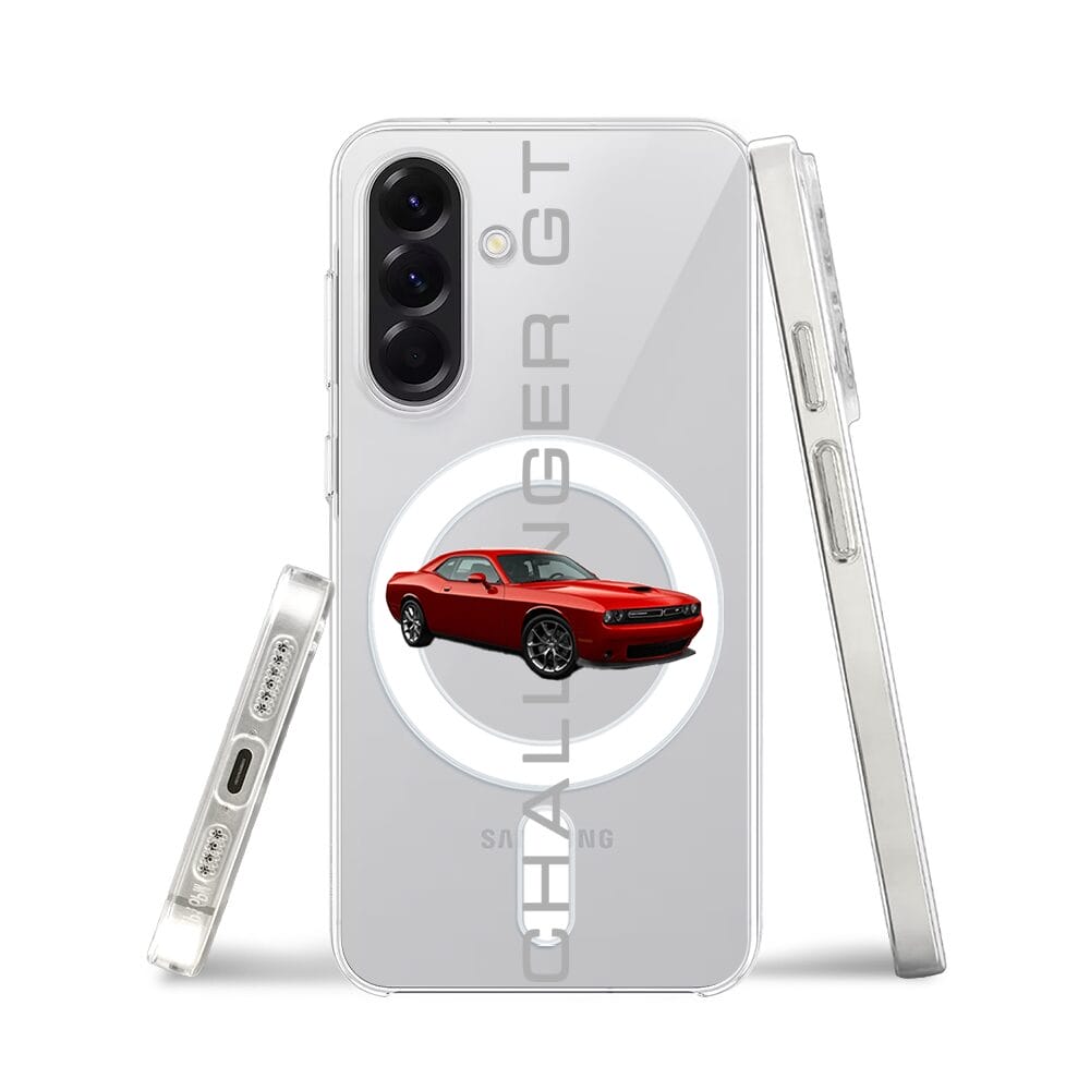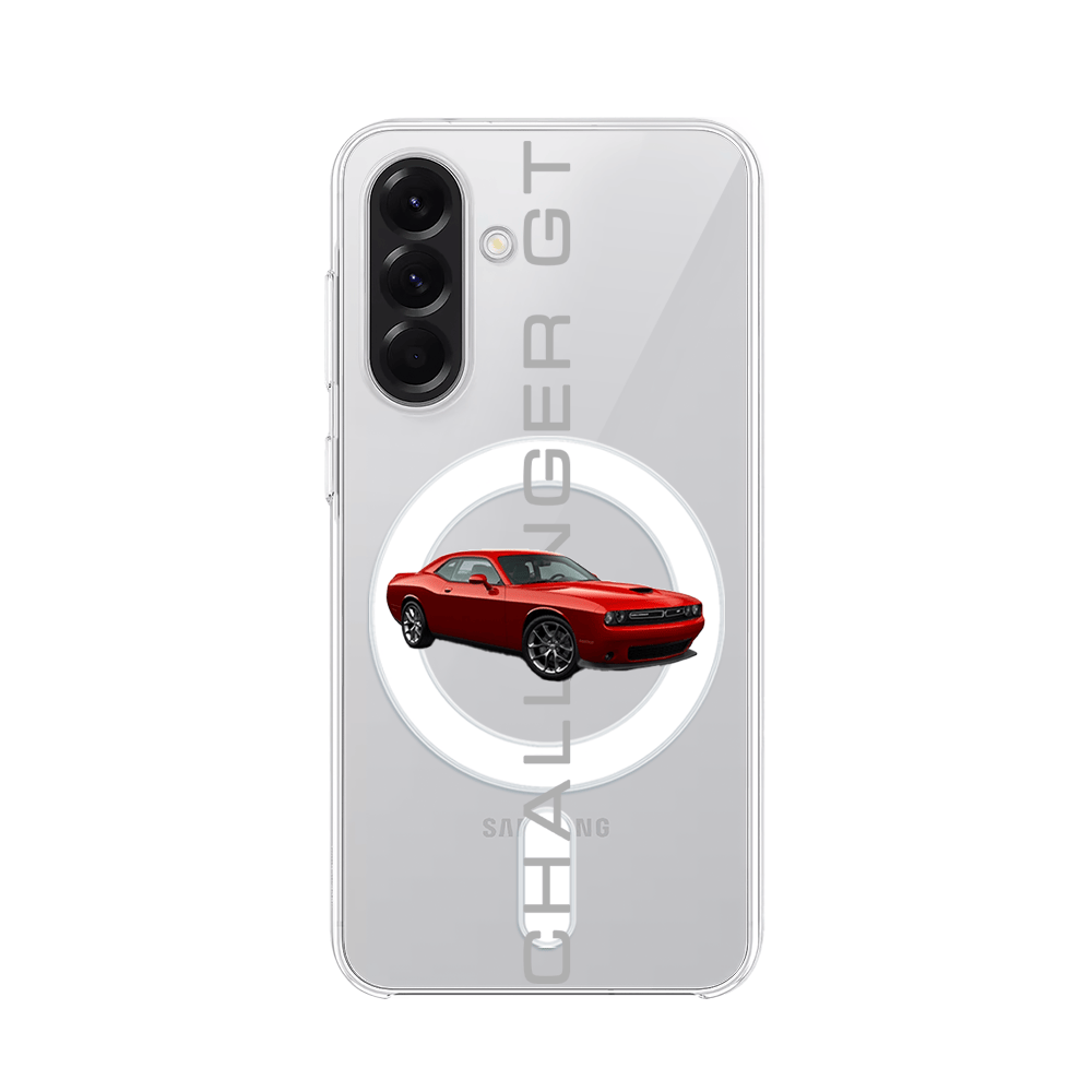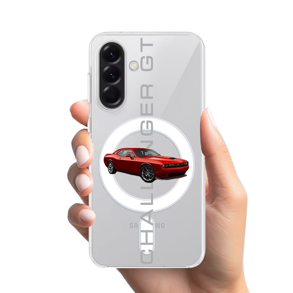 Etui do Samsung Galaxy A57 z MagSafe przeźroczyste, silikonowe Flexi, Szybkie Auta, czerwony Challenger GT
