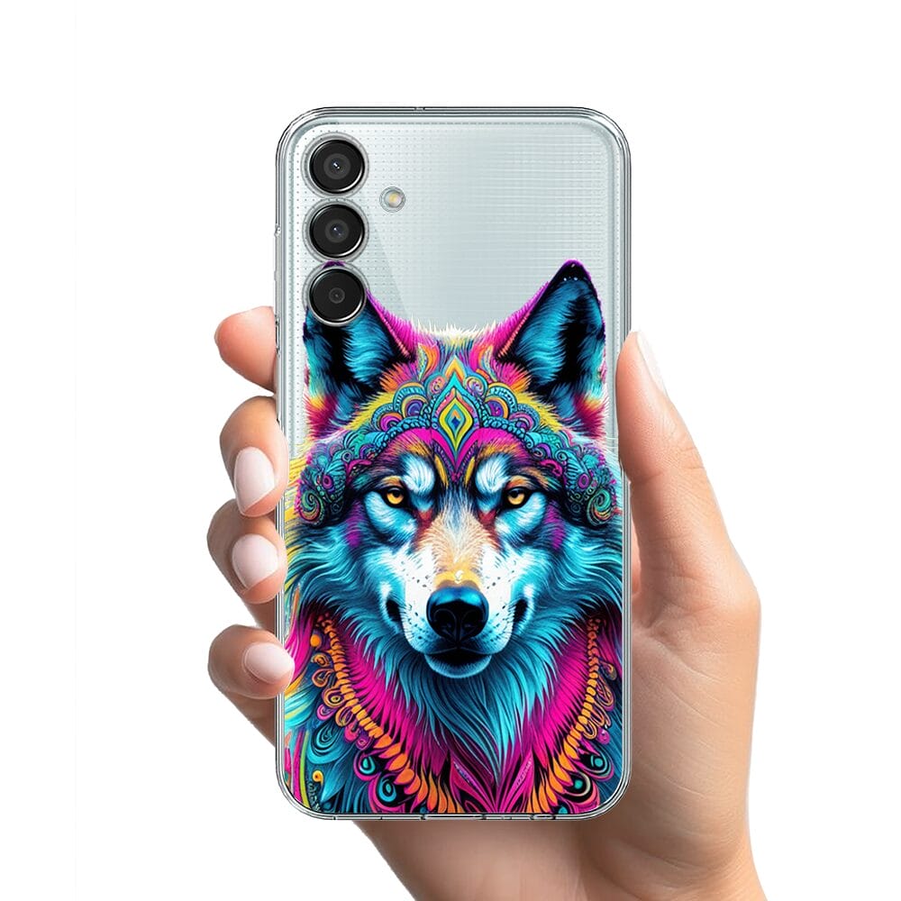 Etui do Samsung Galaxy M15 5G przeźroczyste, silikonowe Flexi, Dzika Mandala, Wilk