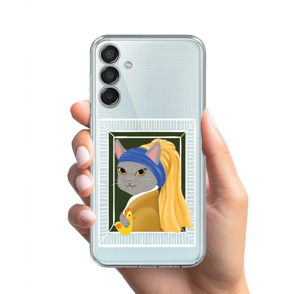 Etui do Samsung Galaxy M15 5G przeźroczyste, silikonowe Flexi, kotek z kurczakiem