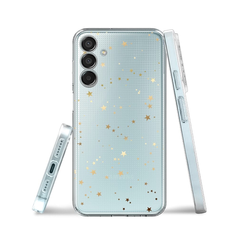Etui do Samsung Galaxy M15 5G przeźroczyste, silikonowe Flexi, Zimowa magia, Złote gwiazdki
