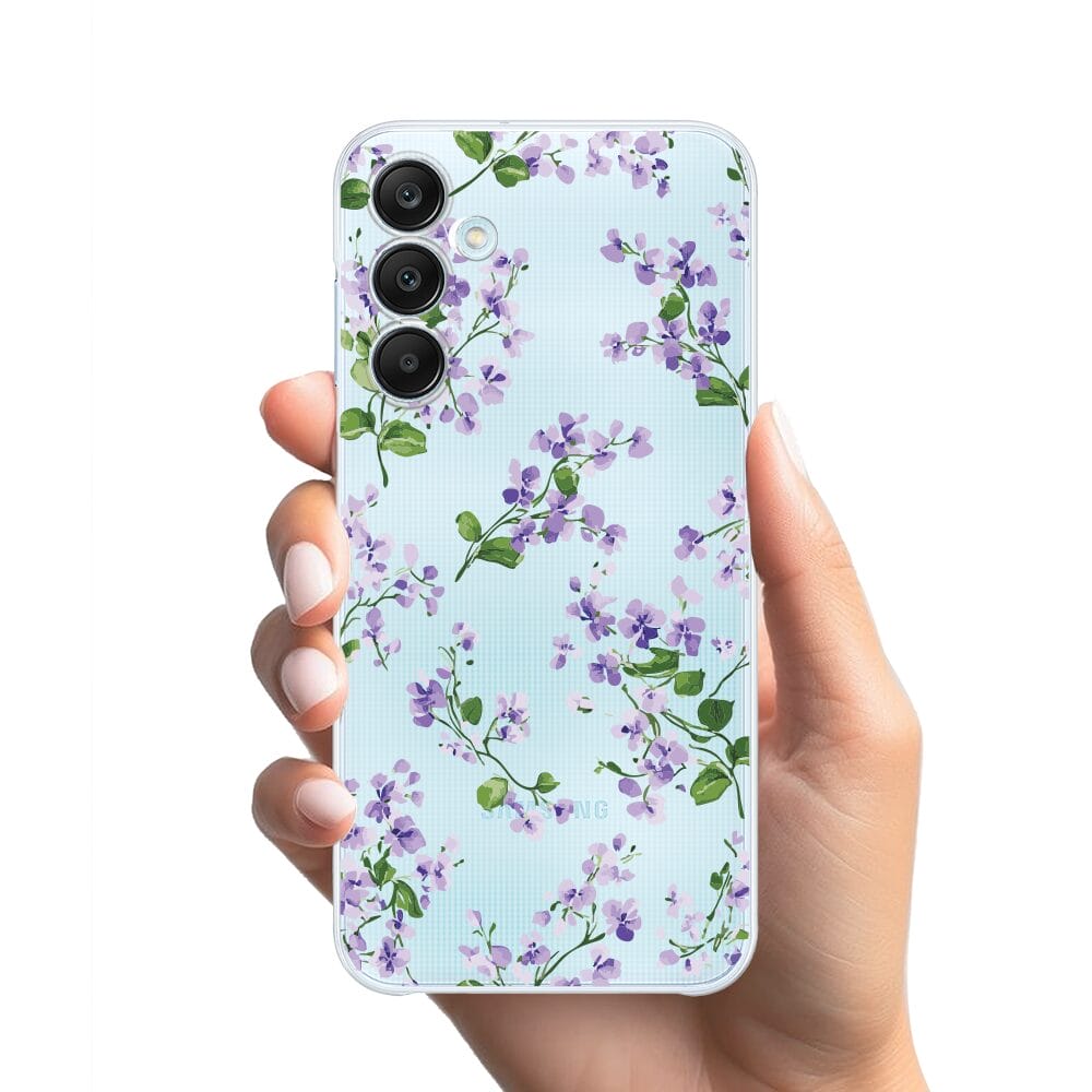 Etui do Samsung Galaxy M35 5G przeźroczyste, silikonowe Flexi, Fioletowe Bratki