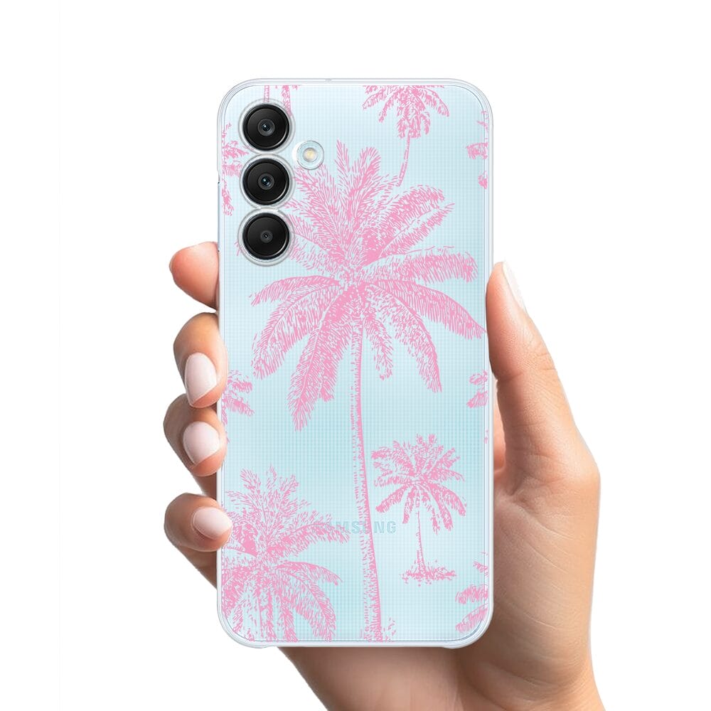 Etui do Samsung Galaxy M35 5G przeźroczyste, silikonowe Flexi, Mystic, Różowe palmy