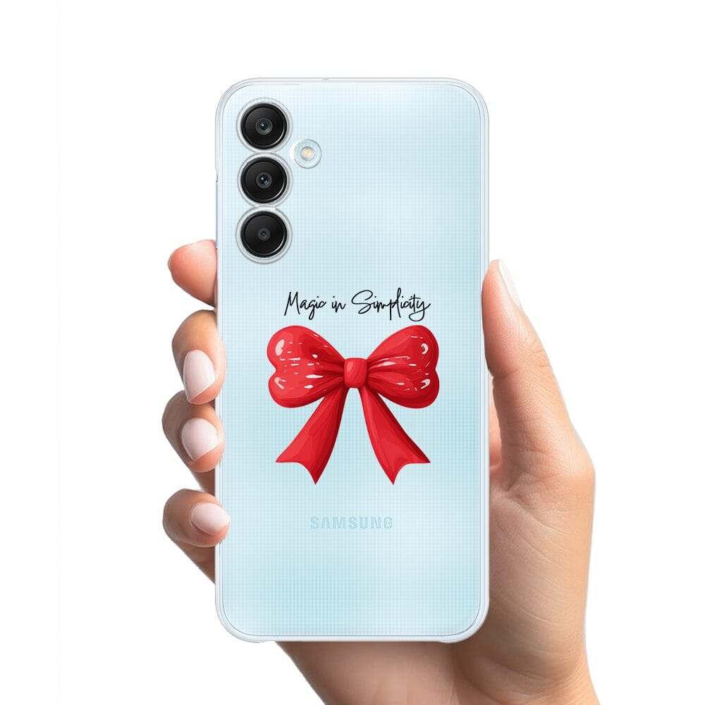 Etui do Samsung Galaxy M35 5G przeźroczyste, silikonowe Flexi, Przytulne święta, Czerwona kokarda