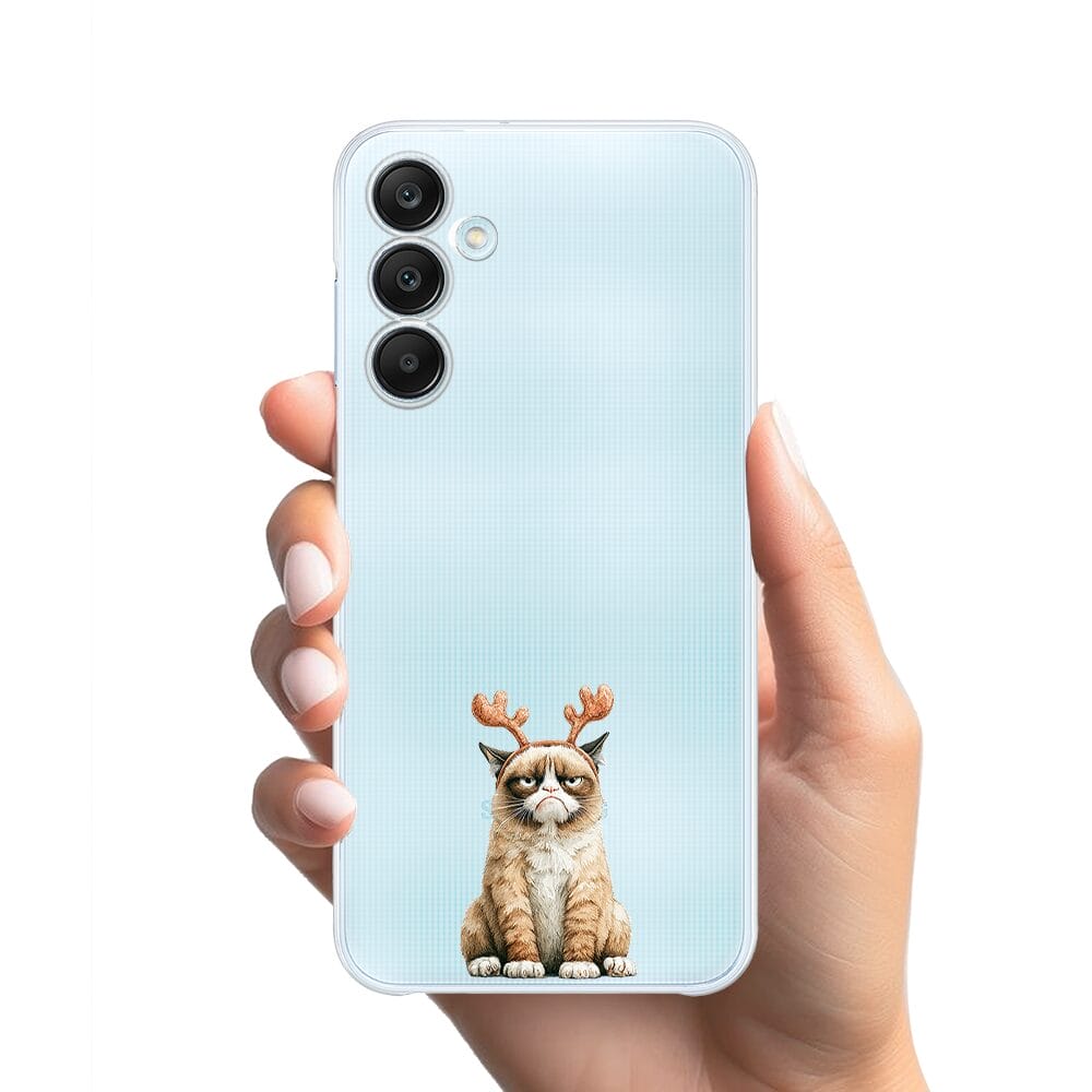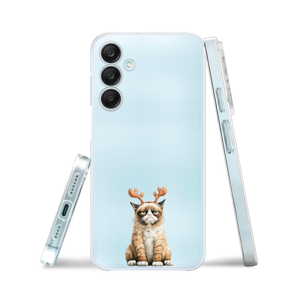 Etui do Samsung Galaxy M35 5G przeźroczyste, silikonowe Flexi, Przytulne święta, Kot który nie chciał być reniferem