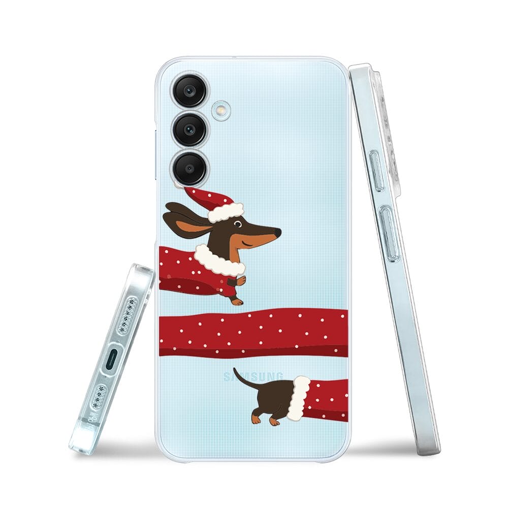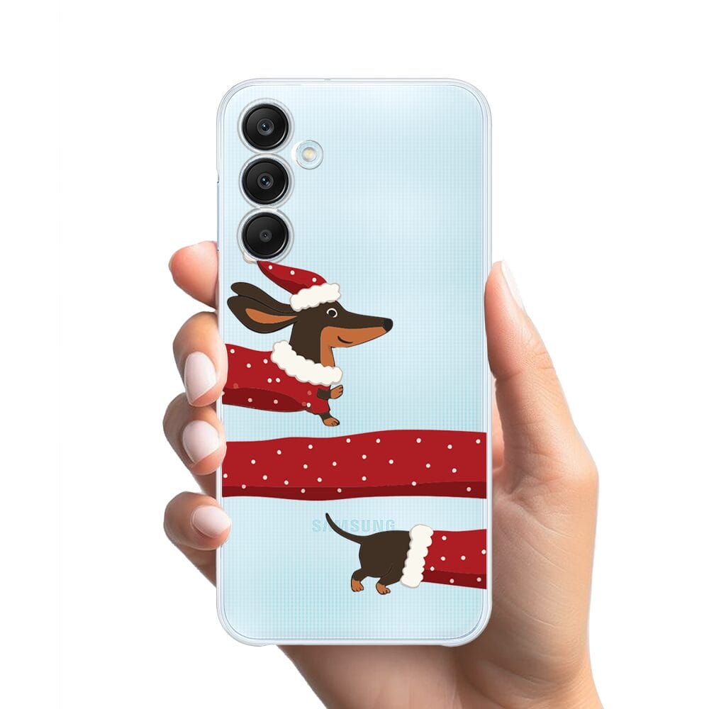 Etui do Samsung Galaxy M35 5G przeźroczyste, silikonowe Flexi, Przytulne święta, świąteczny jamnik