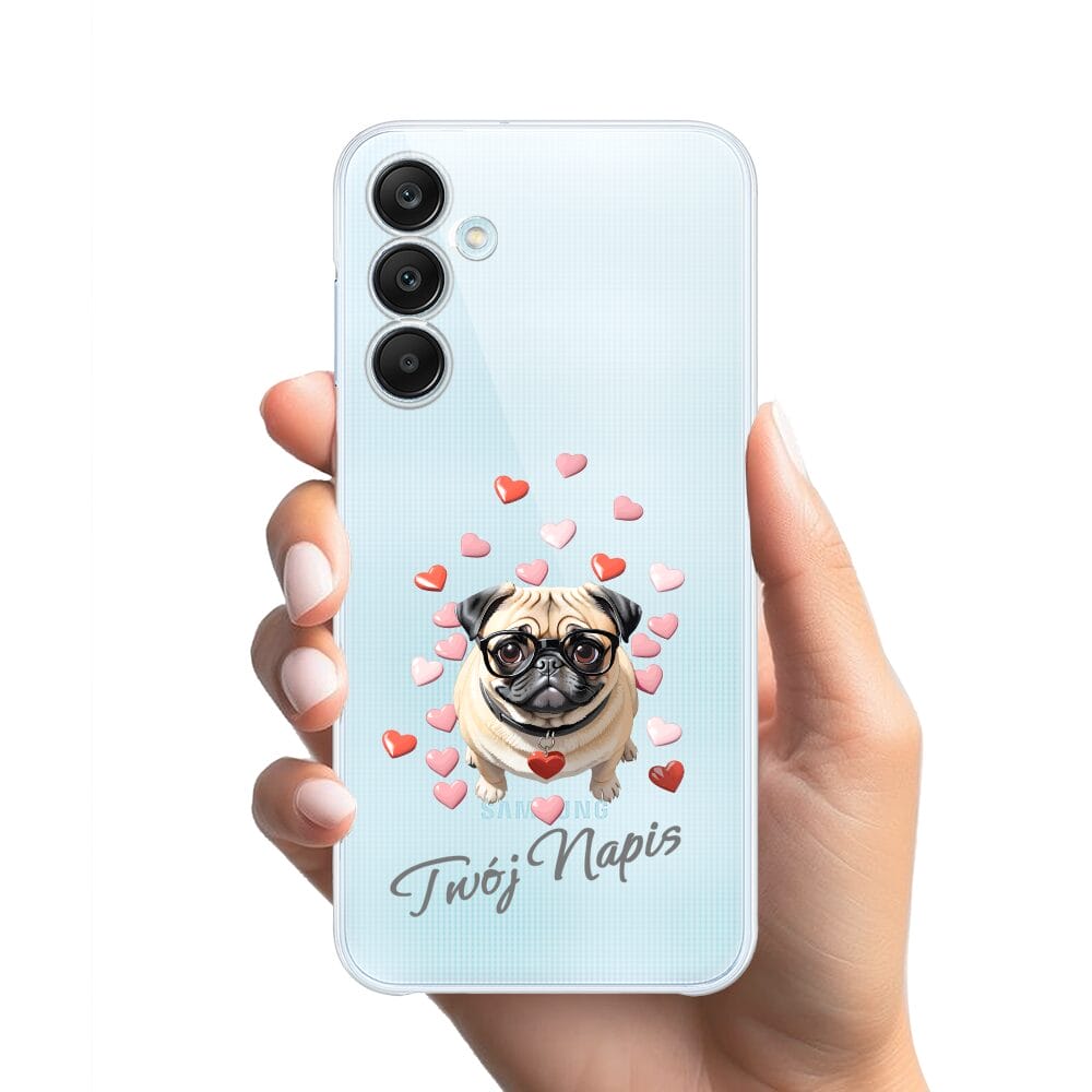 Etui do Samsung Galaxy M35 5G przeźroczyste, silikonowe Flexi, Puppy Love, pies rasy Mops