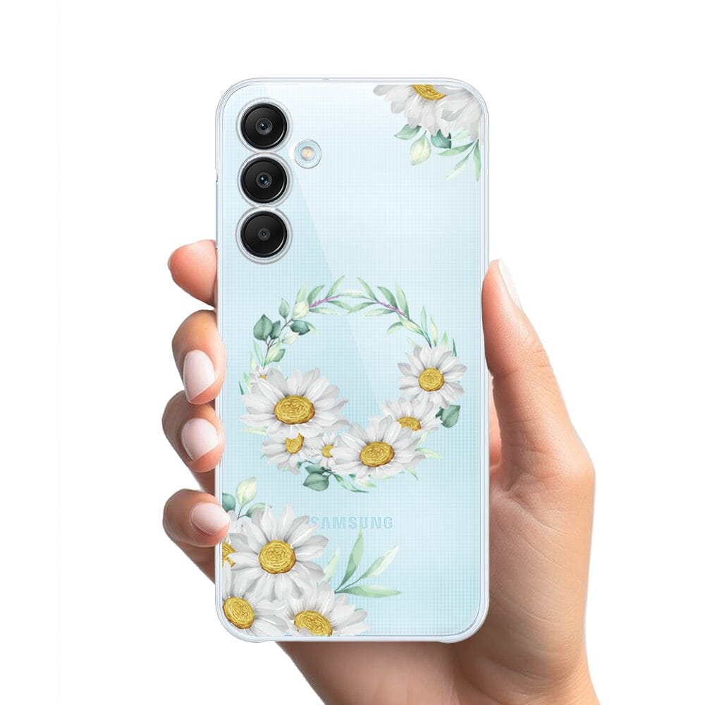 Etui do Samsung Galaxy M35 5G przeźroczyste, silikonowe Flexi, wianek stokrotek