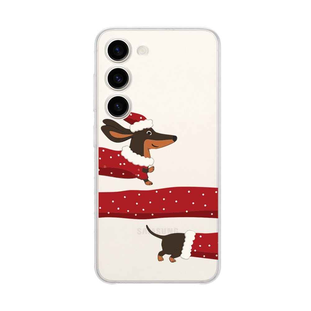 Etui do Samsung Galaxy S23 FE 5G przeźroczyste, silikonowe Flexi, Przytulne święta, świąteczny jamnik