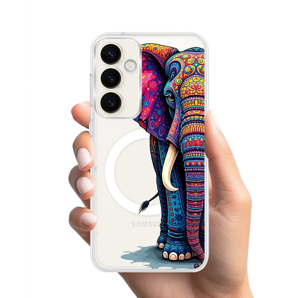 Etui do Samsung Galaxy S23 FE 5G z MagSafe przeźroczyste, silikonowe Flexi, Dzika Mandala, Słoń