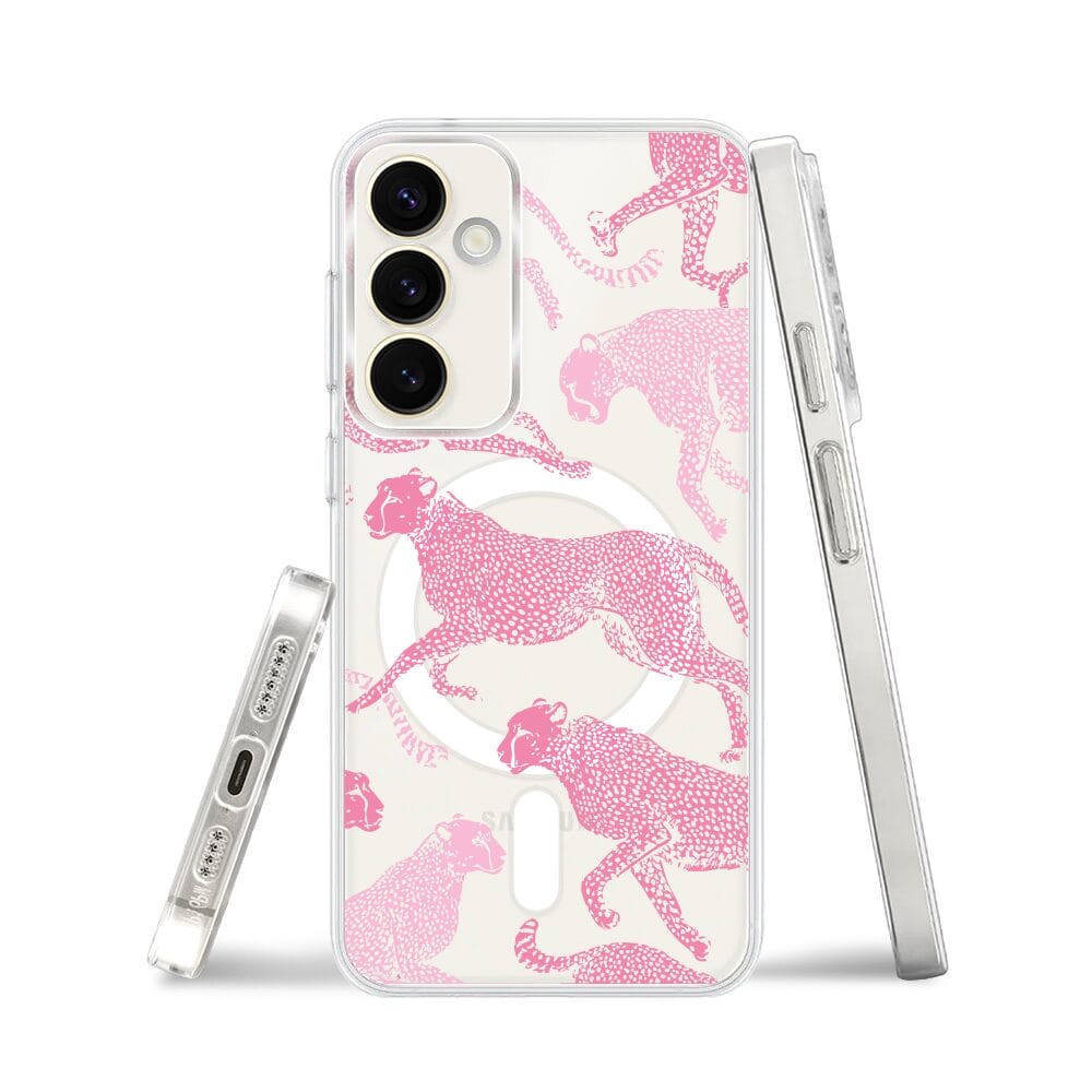Etui do Samsung Galaxy S23 FE 5G z MagSafe przeźroczyste, silikonowe Flexi, Mystic, Różowe pumy
