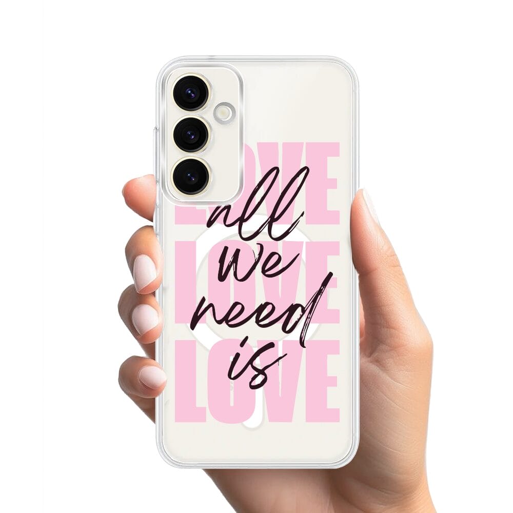 Etui do Samsung Galaxy S23 FE 5G z MagSafe przeźroczyste, silikonowe Flexi, Positive Vibes, All We Need Is Love