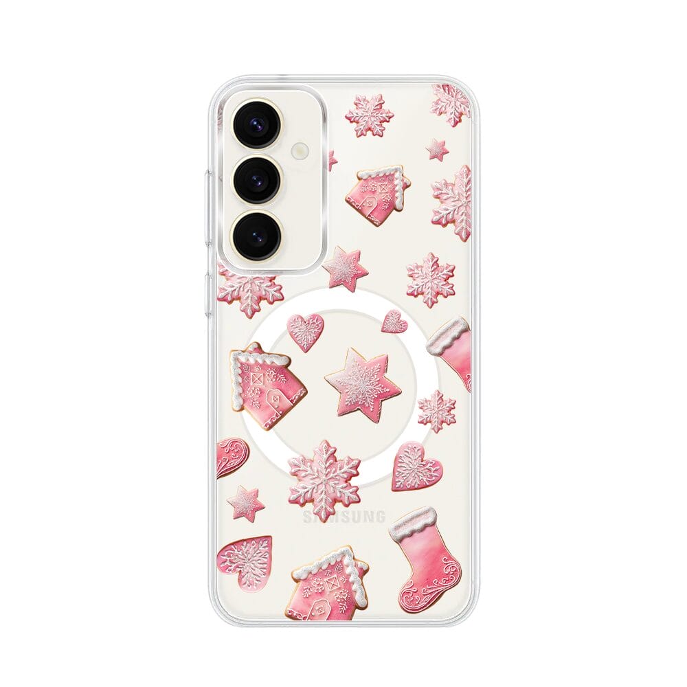 Etui do Samsung Galaxy S23 FE 5G z MagSafe przeźroczyste, silikonowe Flexi, Przytulne święta, Różowe pierniczki