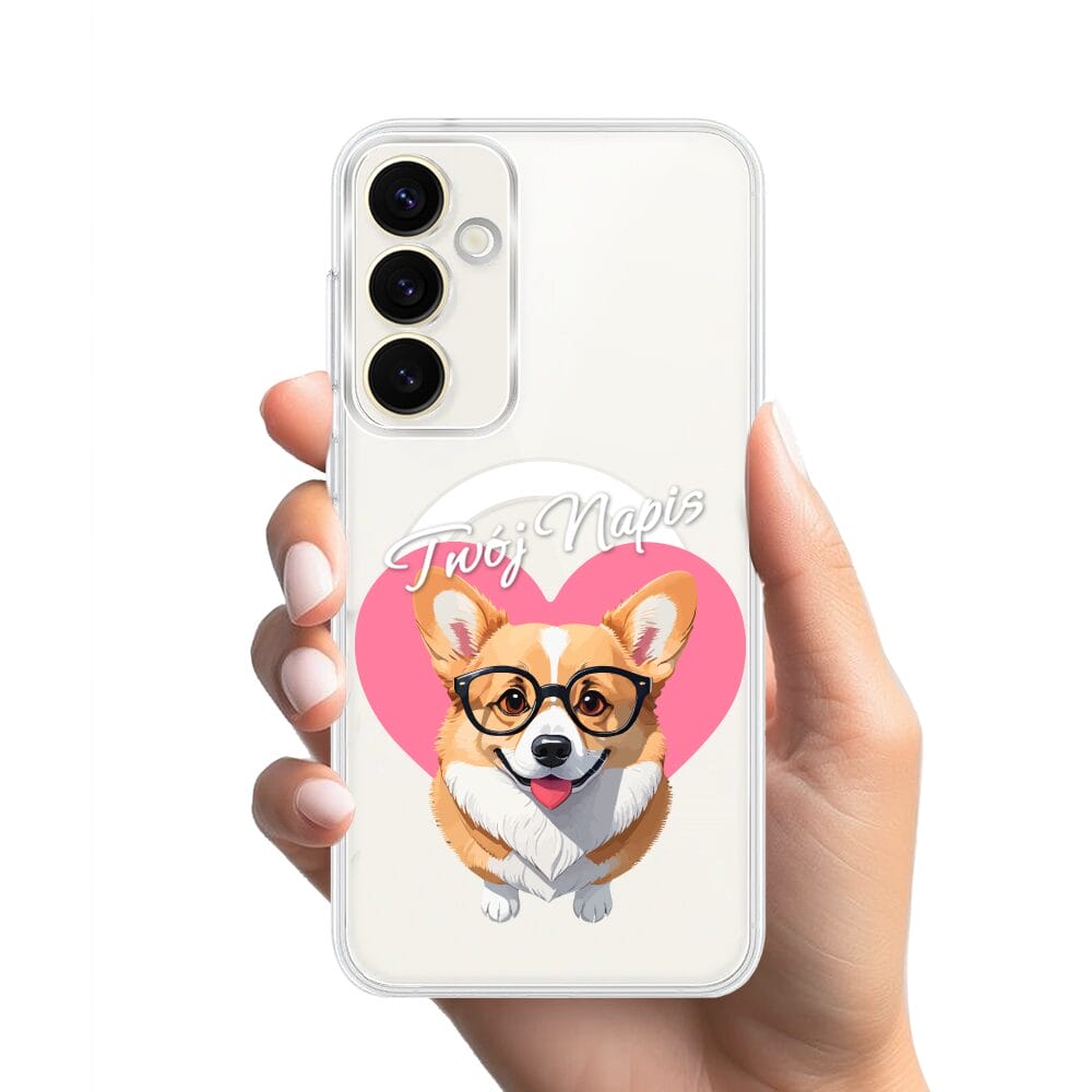 Etui do Samsung Galaxy S23 FE 5G z MagSafe przeźroczyste, silikonowe Flexi, Puppy Love, pies rasy Corgi