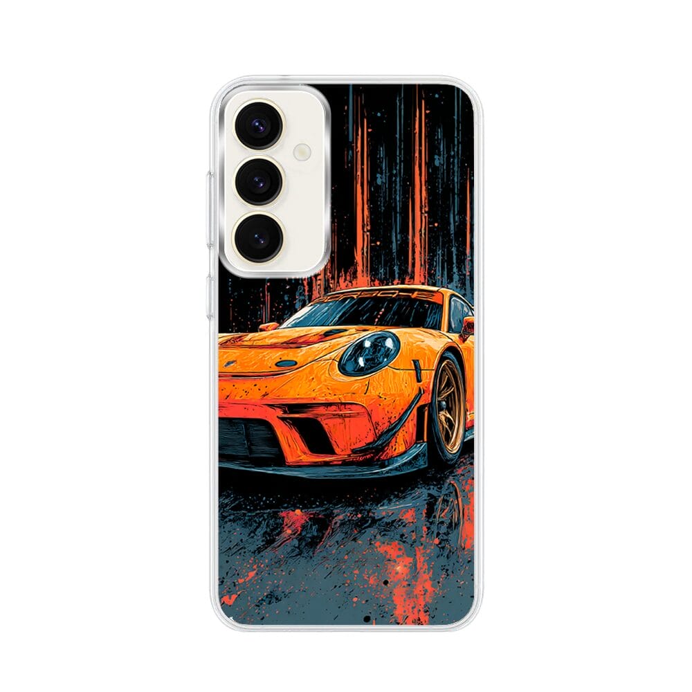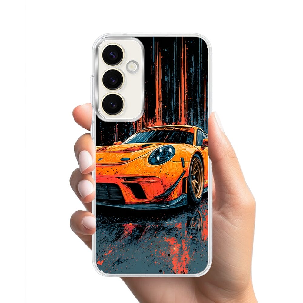 Etui do Samsung Galaxy S23 FE 5G z MagSafe przeźroczyste, silikonowe Flexi, Szybkie Auta, Pomarańczowa 911