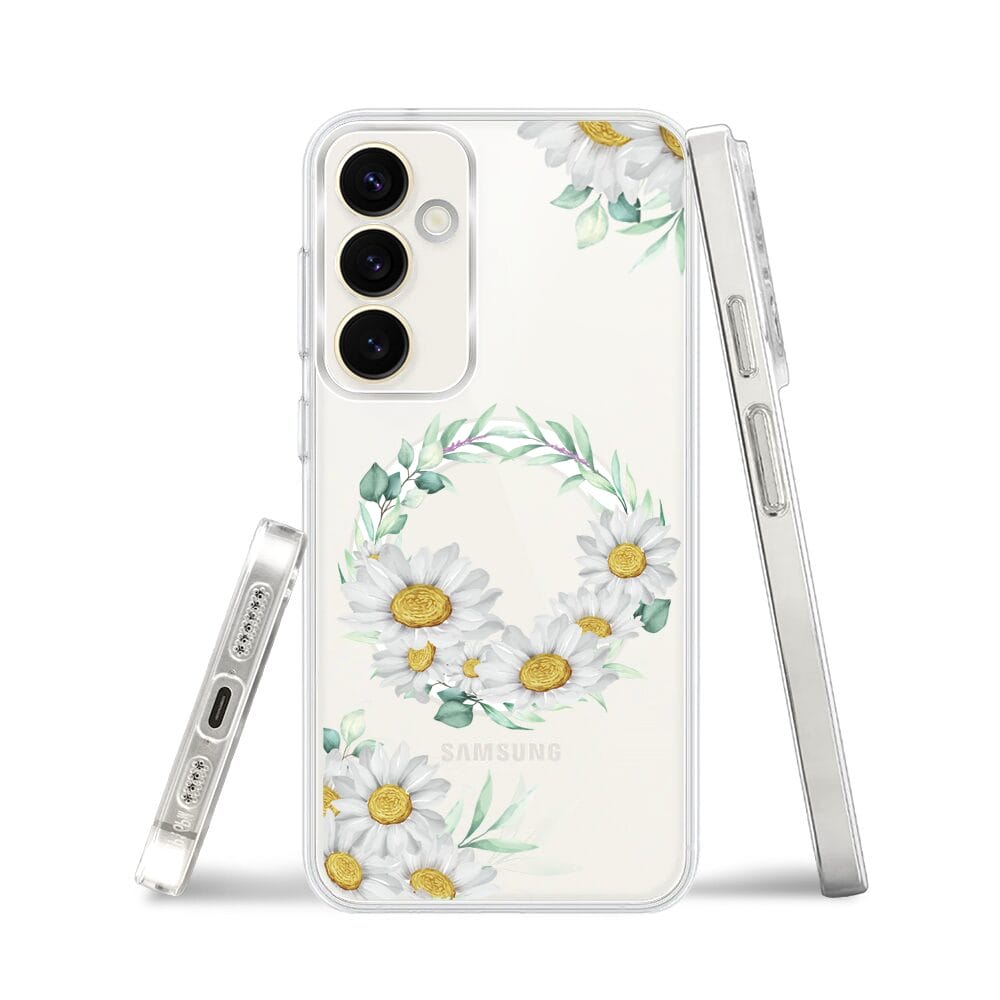 Etui do Samsung Galaxy S23 FE 5G z MagSafe przeźroczyste, silikonowe Flexi, wianek stokrotek