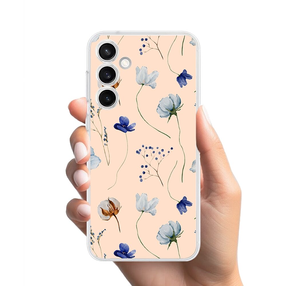 Etui do Samsung Galaxy S23 Plus przeźroczyste, silikonowe Flexi, kwiatki niebieskie na pudrowym tle