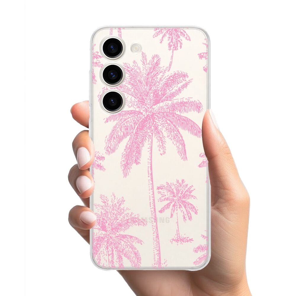 Etui do Samsung Galaxy S23 Plus przeźroczyste, silikonowe Flexi, Mystic, Różowe palmy