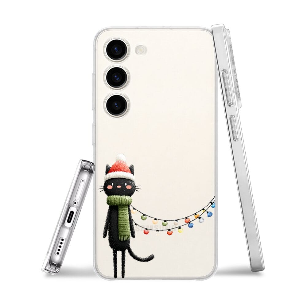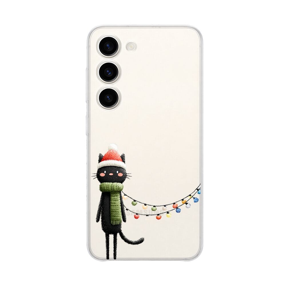 Etui do Samsung Galaxy S23 Plus przeźroczyste, silikonowe Flexi, Przytulne święta, Kot przebrany za elfa