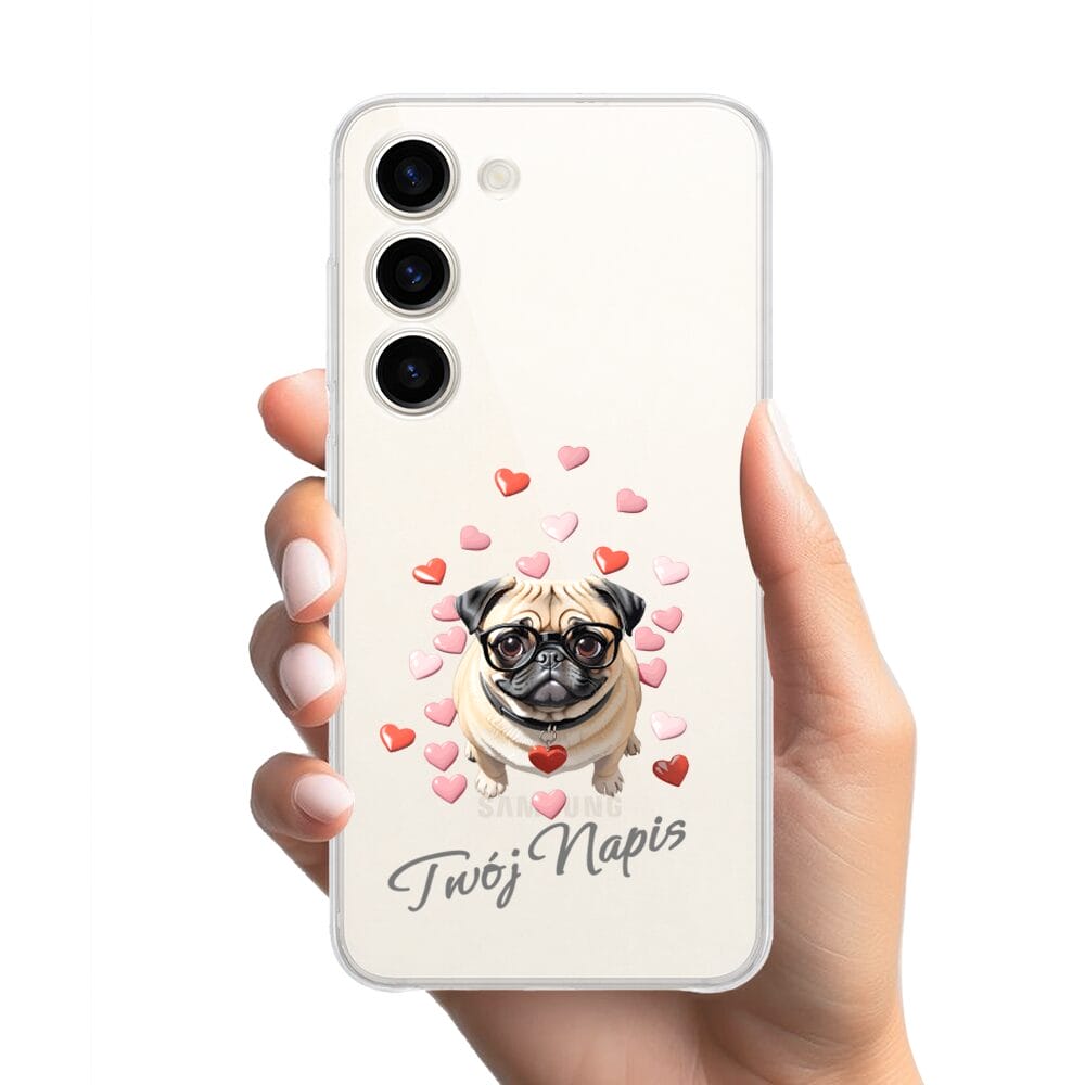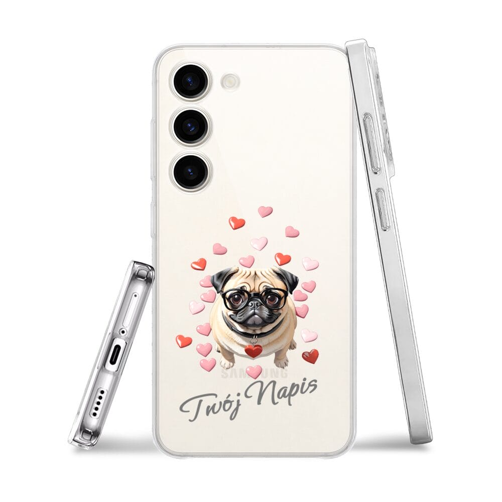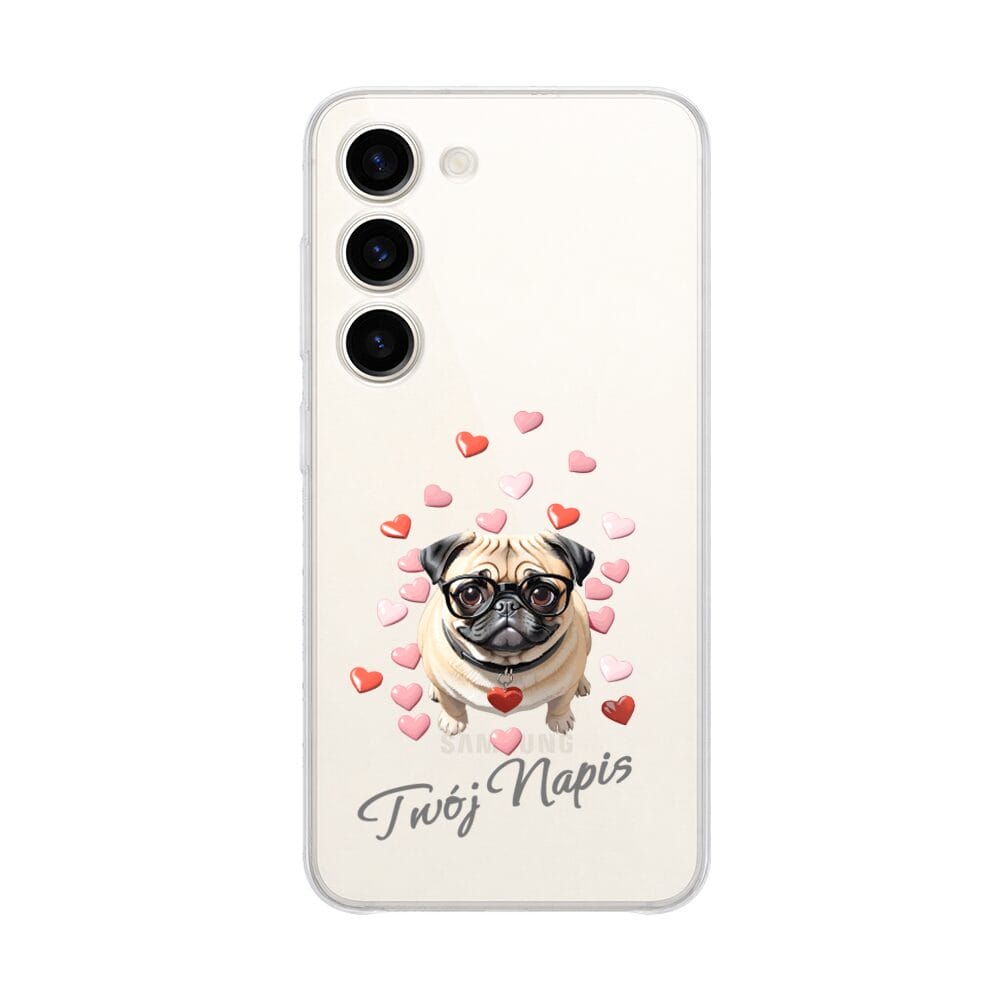 Etui do Samsung Galaxy S23 Plus przeźroczyste, silikonowe Flexi, Puppy Love, pies rasy Mops