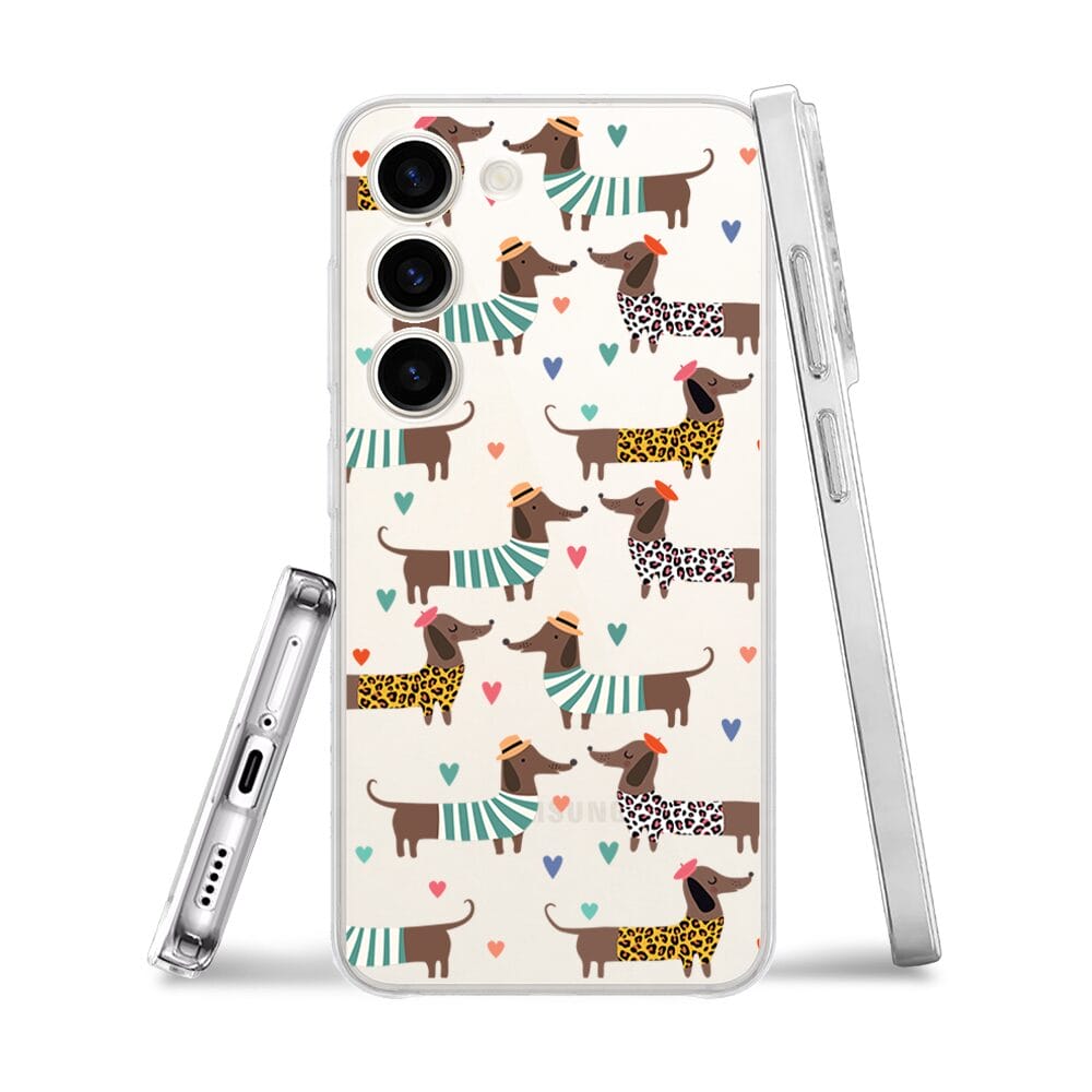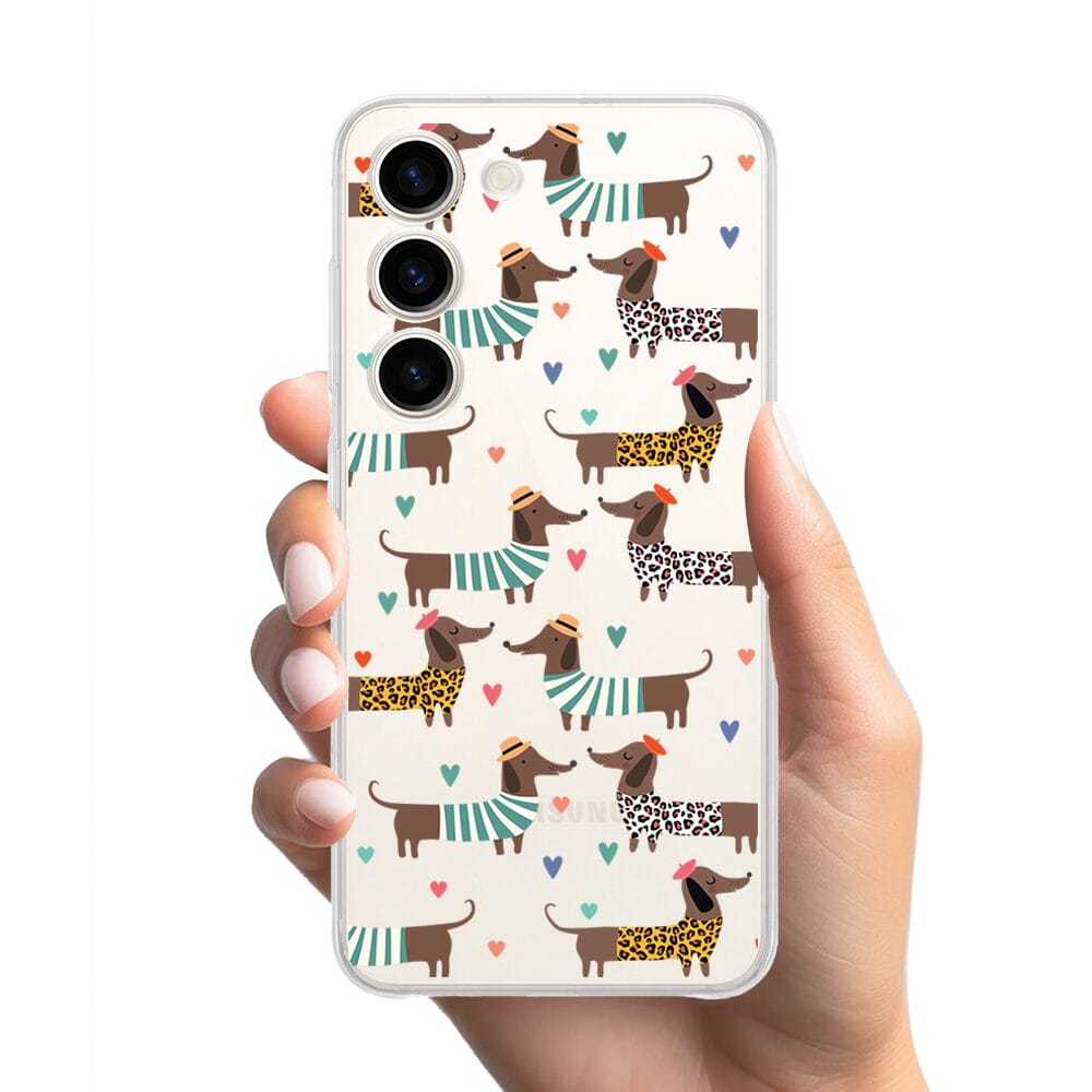 Etui do Samsung Galaxy S23 Plus przeźroczyste, silikonowe Flexi, zakochane jamniki