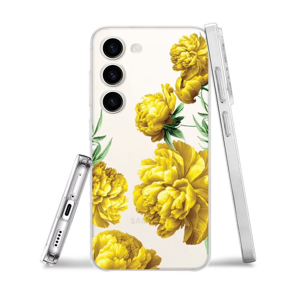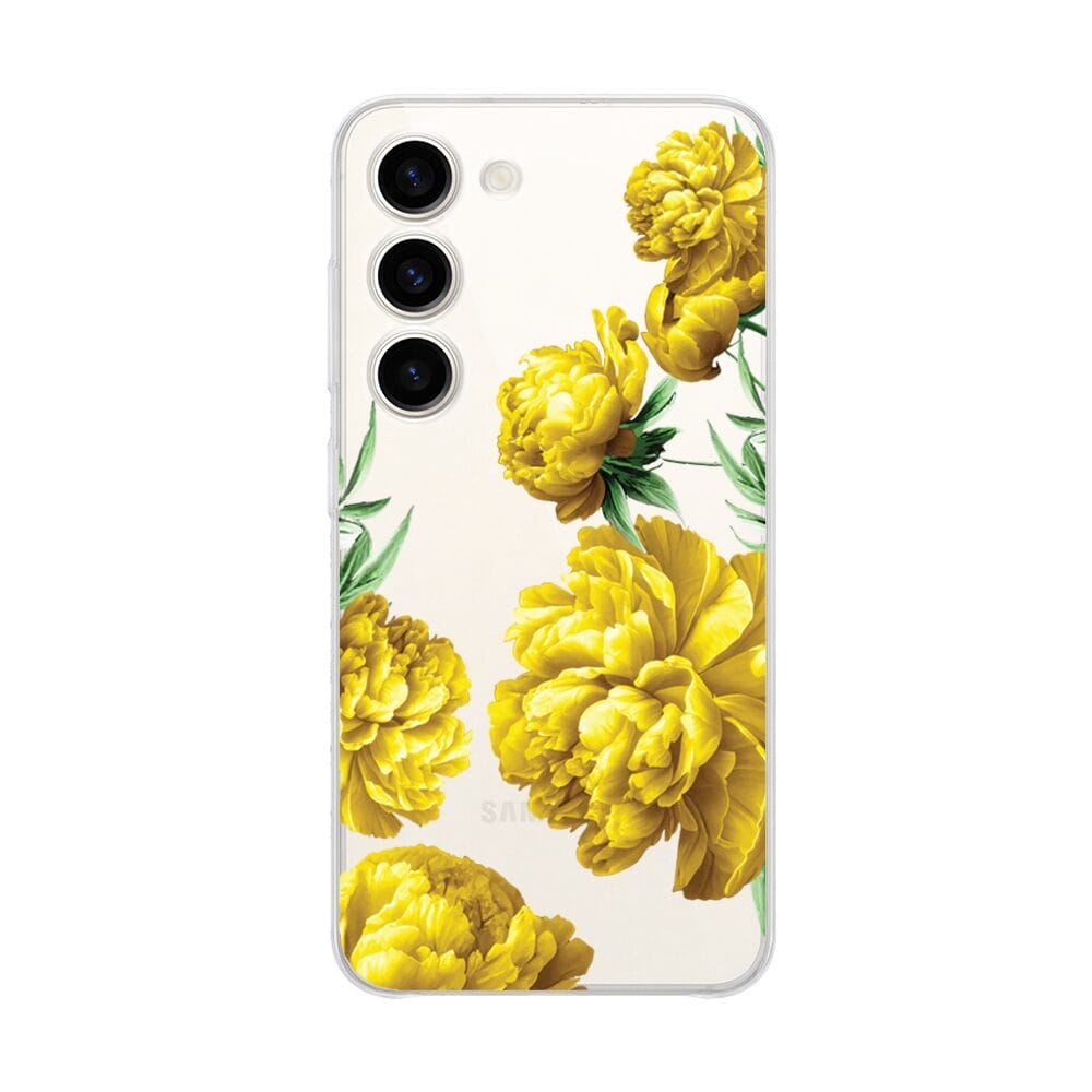 Etui do Samsung Galaxy S23 Plus przeźroczyste, silikonowe Flexi, żółte piwonie