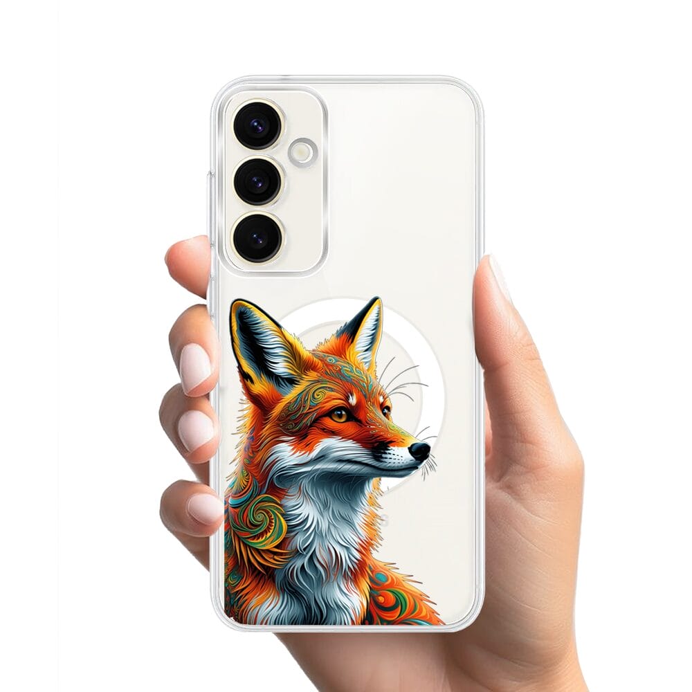 Etui do Samsung Galaxy S23 Plus z MagSafe przeźroczyste, silikonowe Flexi, Dzika Mandala, Twarz lisa