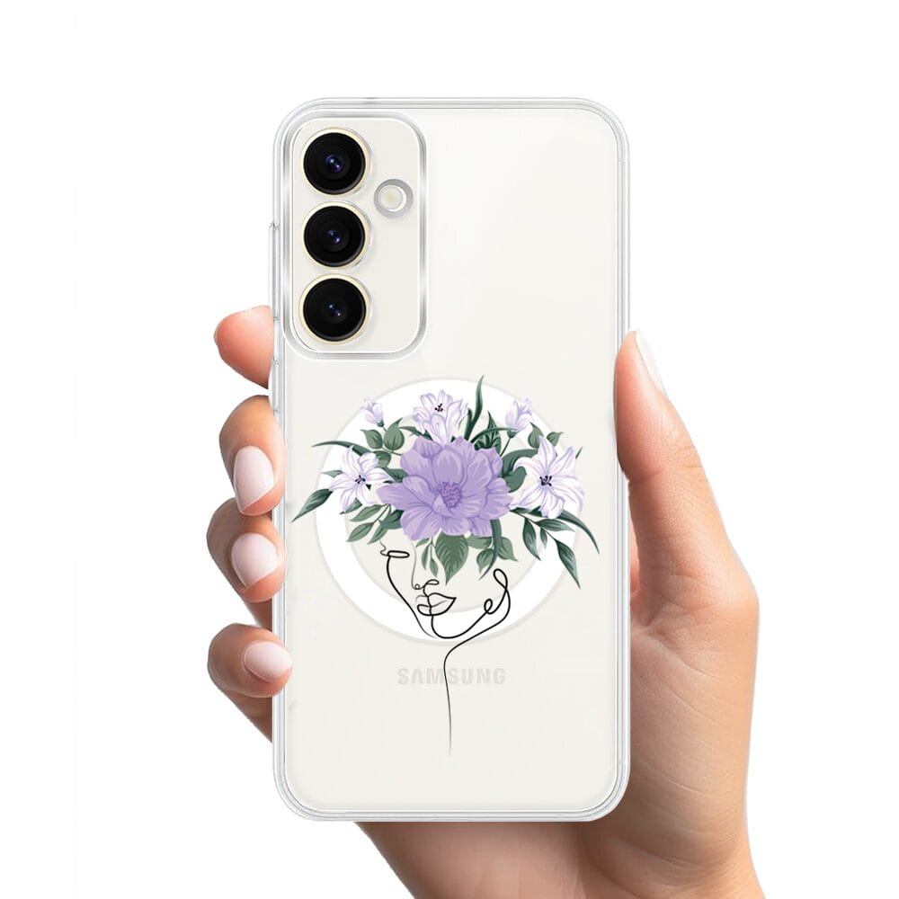 Etui do Samsung Galaxy S23 Plus z MagSafe przeźroczyste, silikonowe Flexi, kobieta z kwiatami