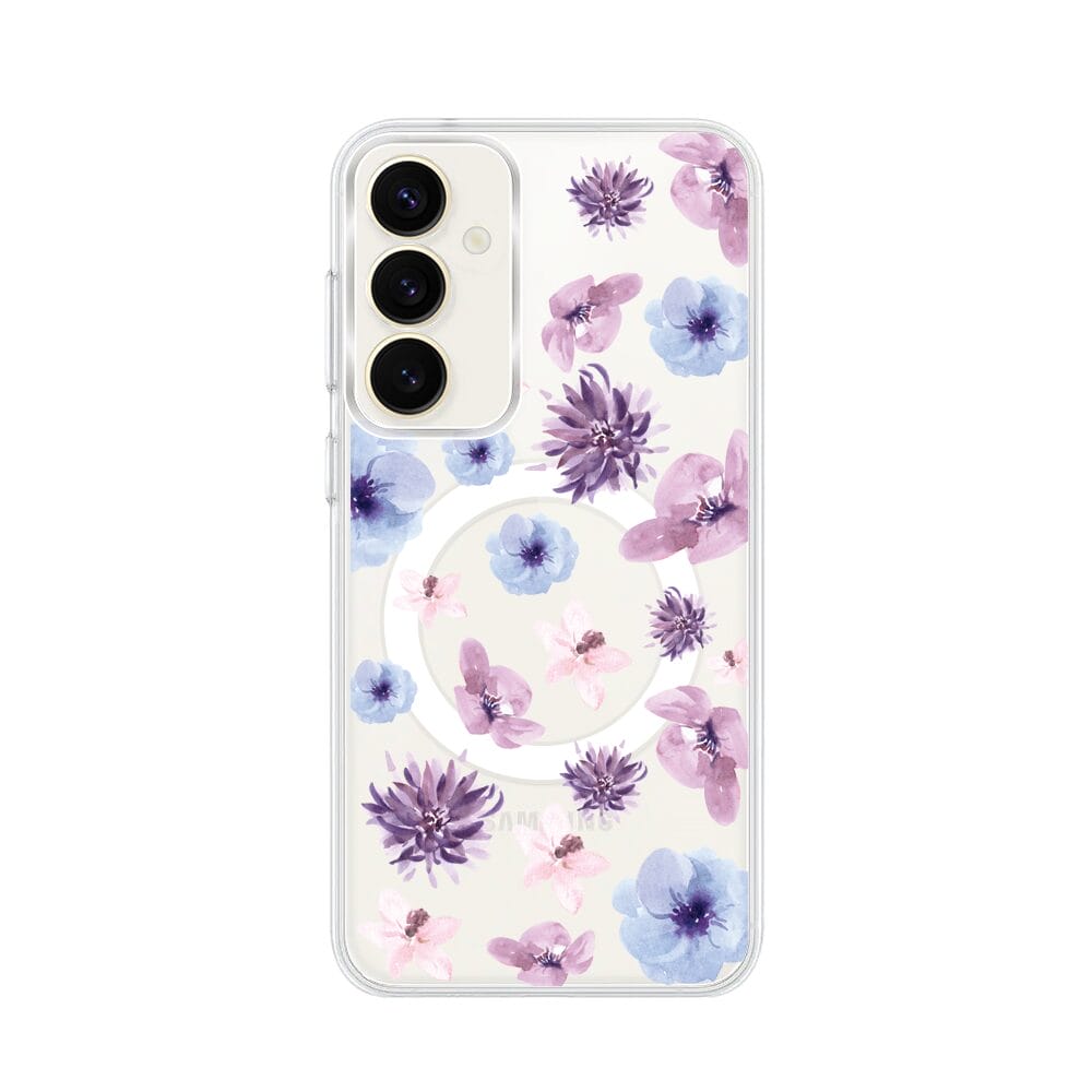 Etui do Samsung Galaxy S23 Plus z MagSafe przeźroczyste, silikonowe Flexi, kwiatki niebieskie, fioletowe