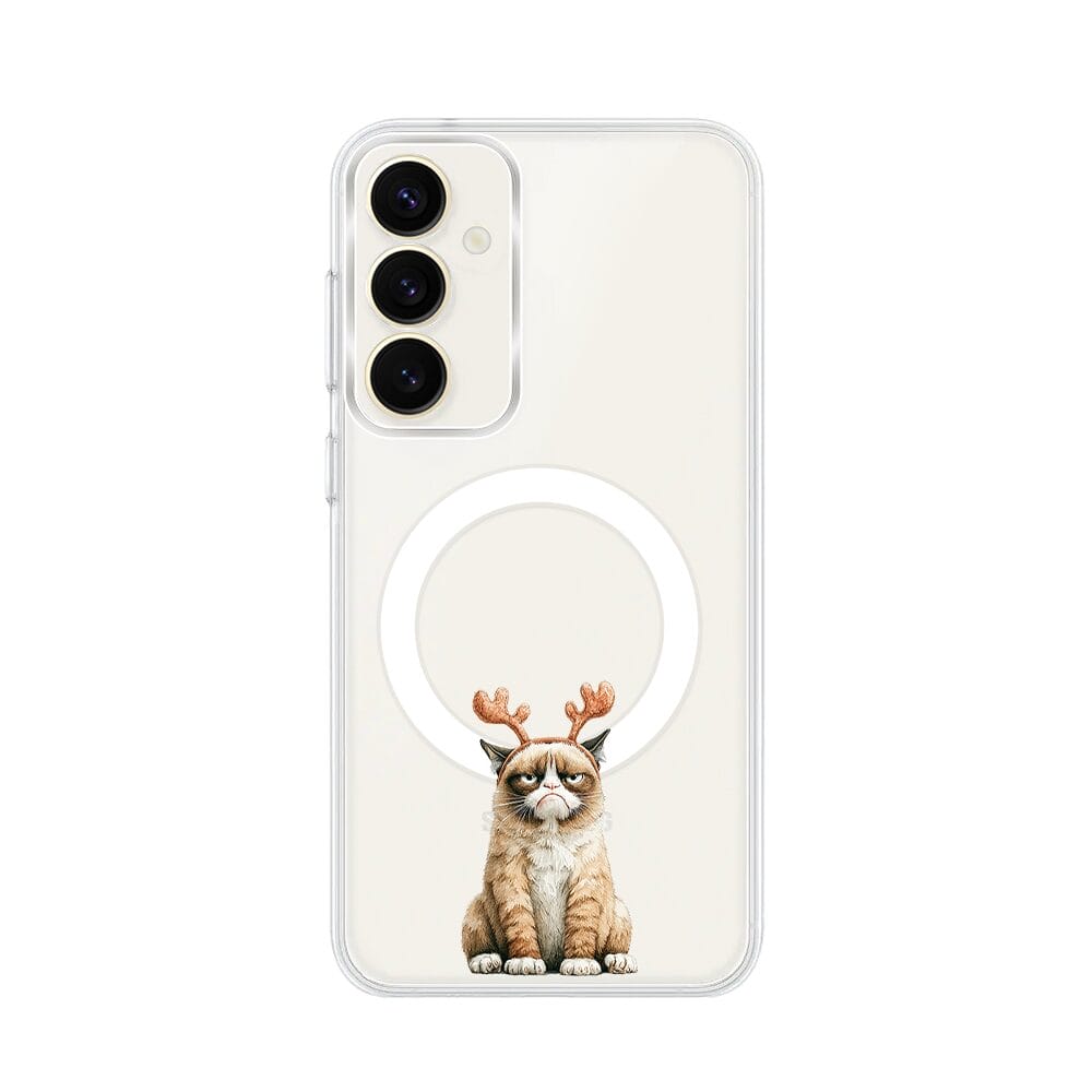 Etui do Samsung Galaxy S23 Plus z MagSafe przeźroczyste, silikonowe Flexi, Przytulne święta, Kot który nie chciał być reniferem