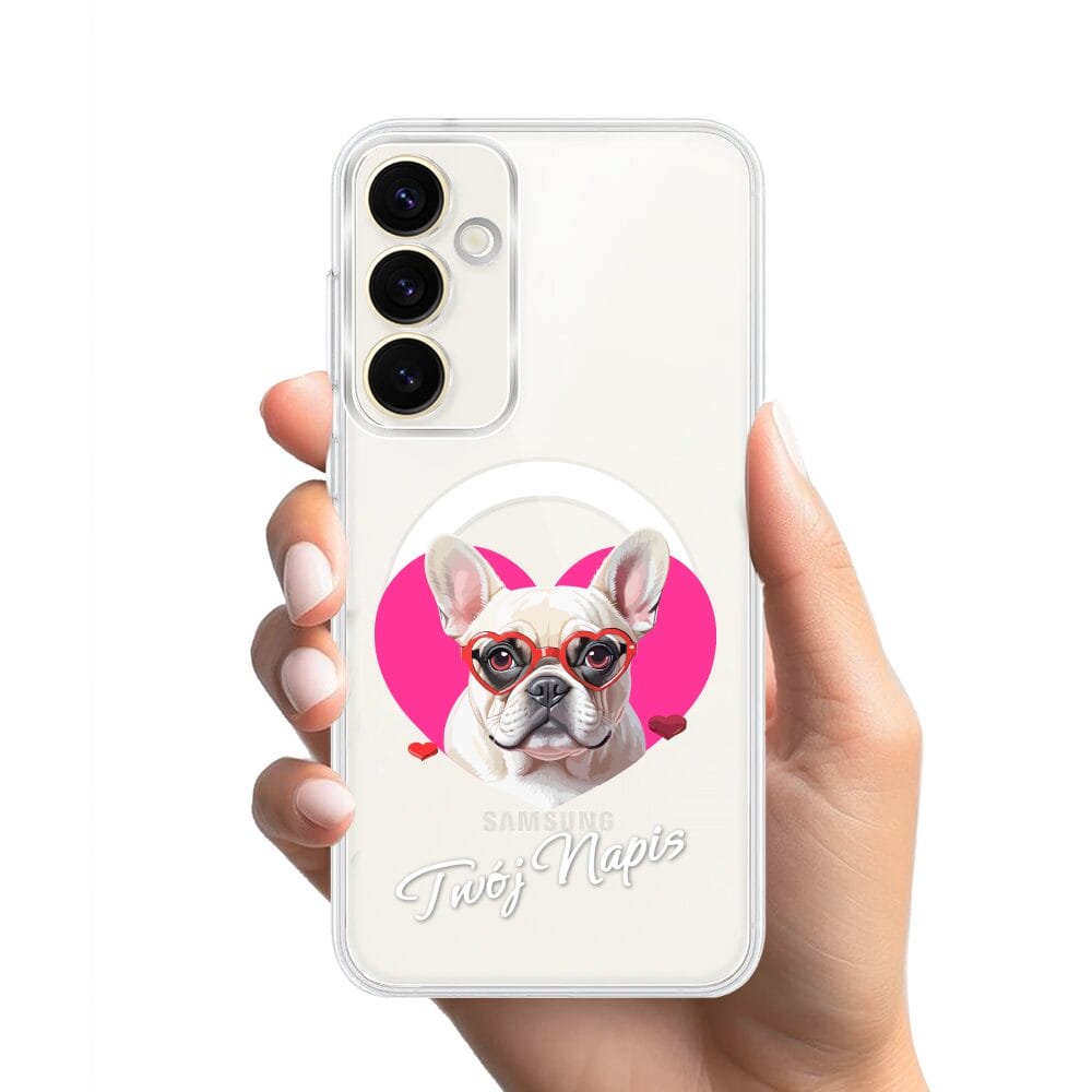 Etui do Samsung Galaxy S23 Plus z MagSafe przeźroczyste, silikonowe Flexi, Puppy Love, pies rasy Buldog Francuski