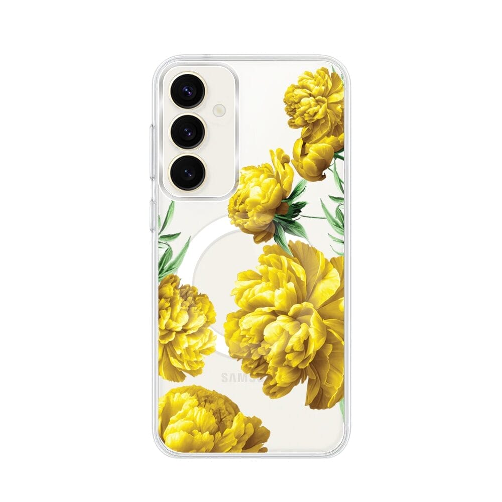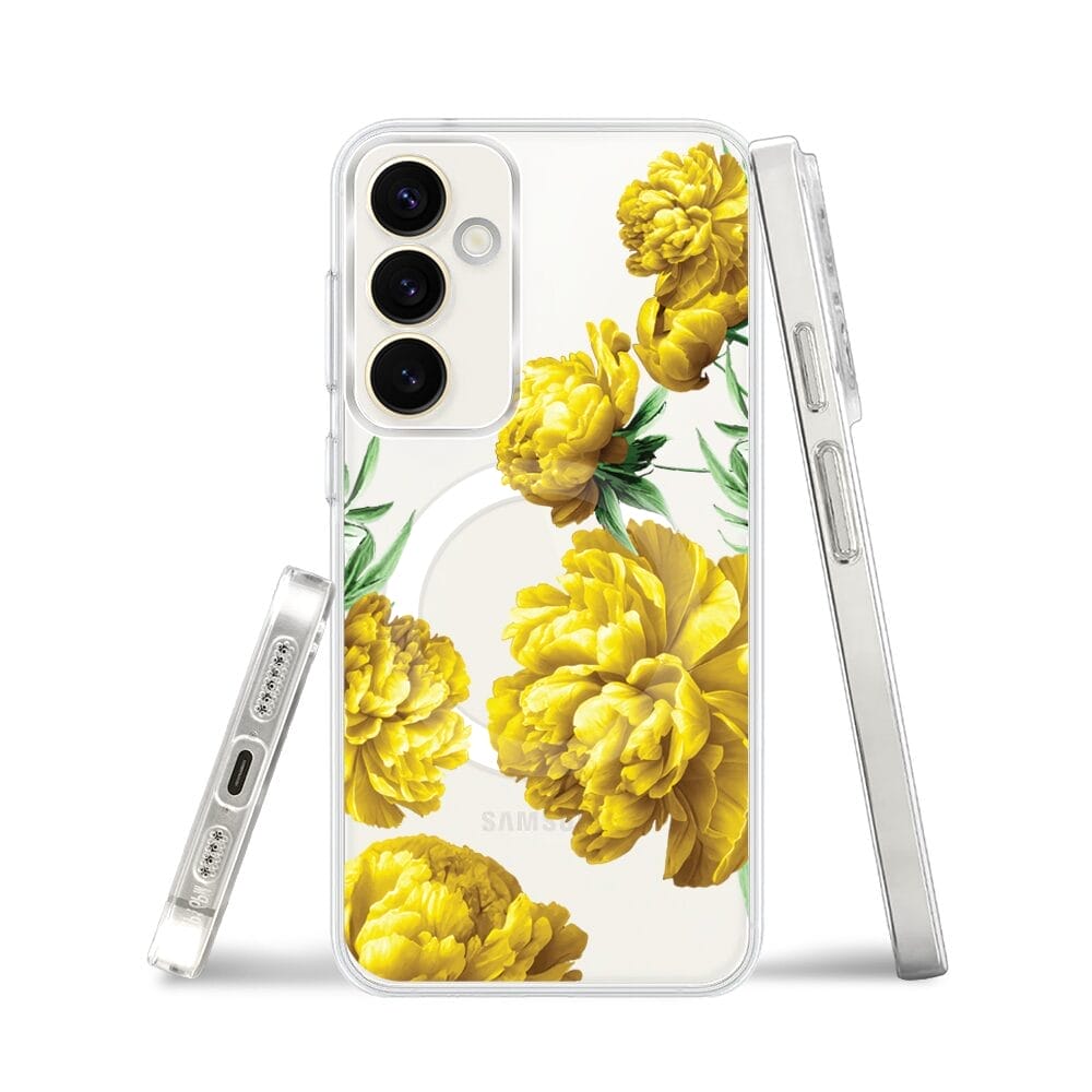 Etui do Samsung Galaxy S23 Plus z MagSafe przeźroczyste, silikonowe Flexi, żółte piwonie