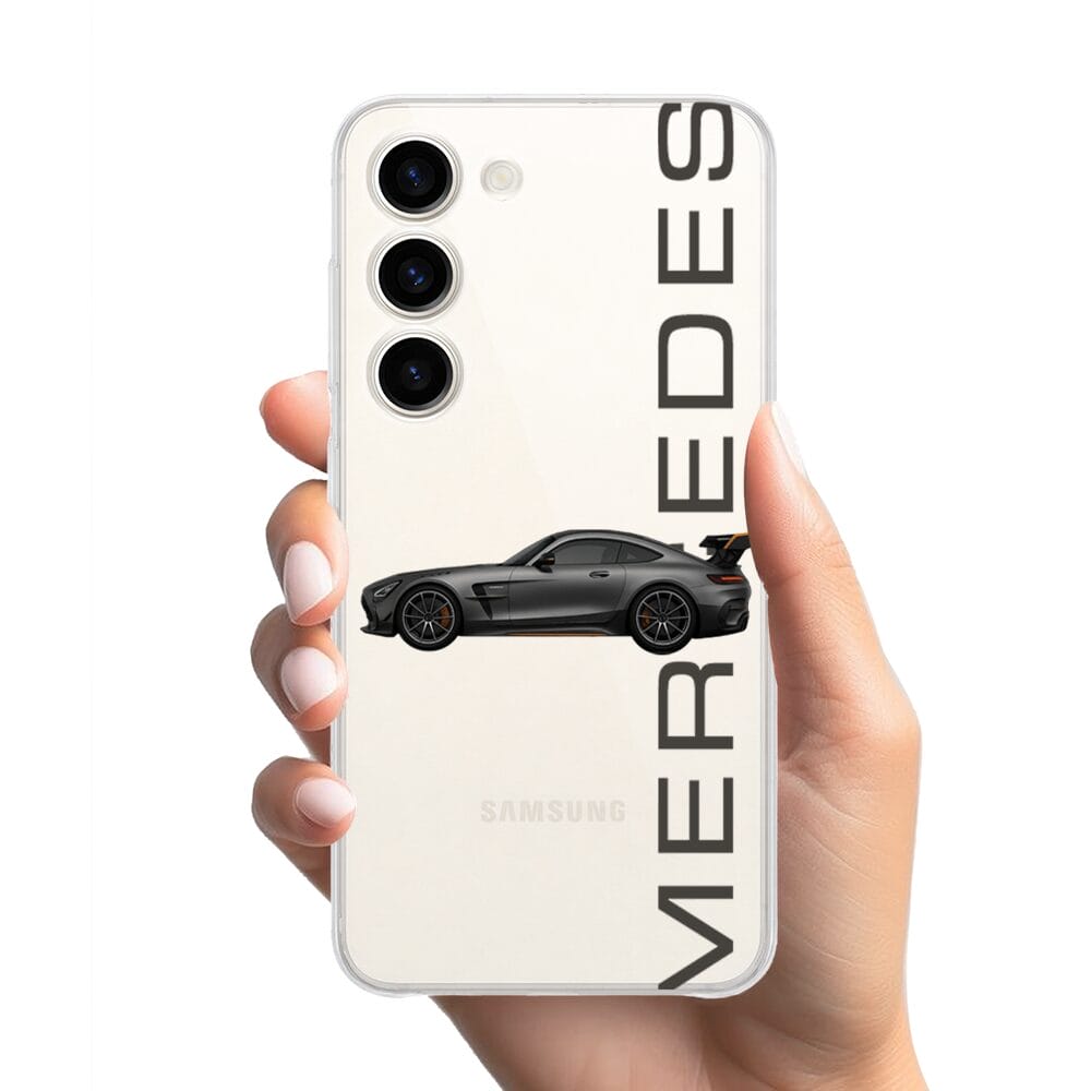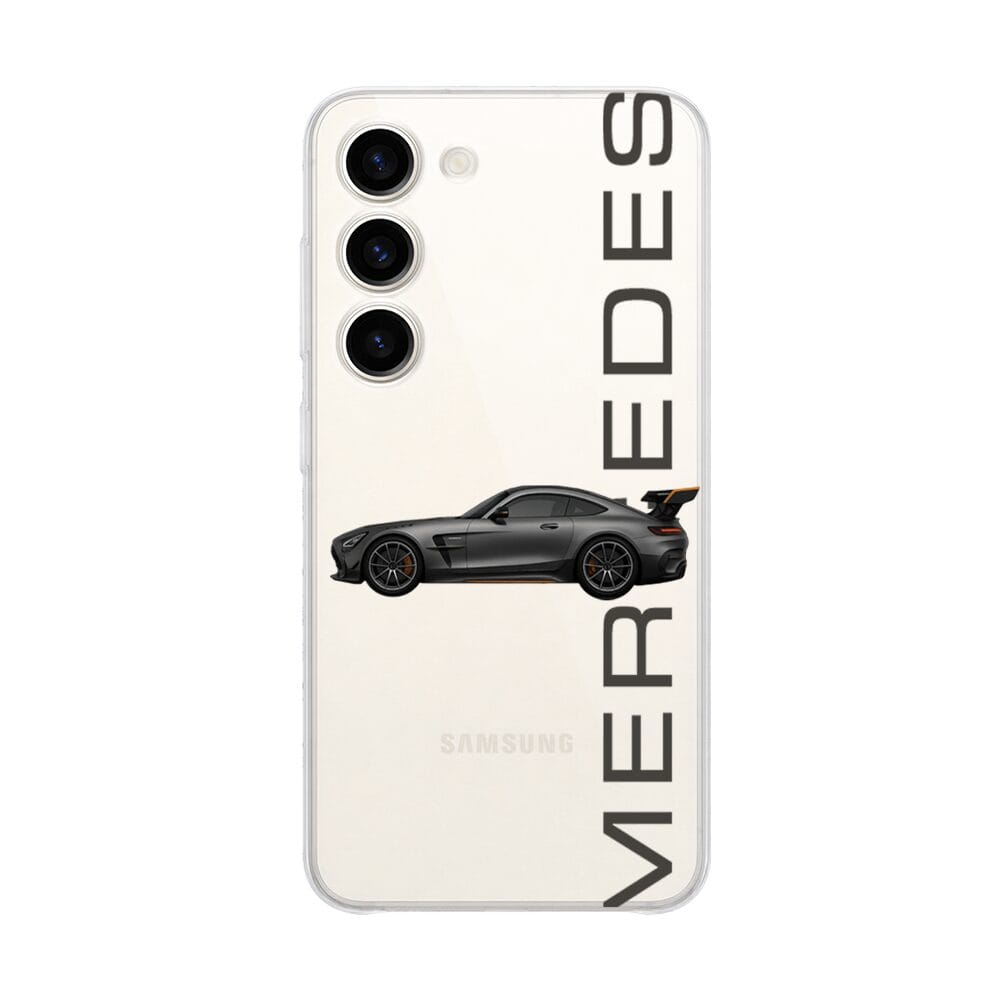 Etui do Samsung Galaxy S23 przeźroczyste, silikonowe Flexi, Szybkie Auta, Stalowe AMG-GT