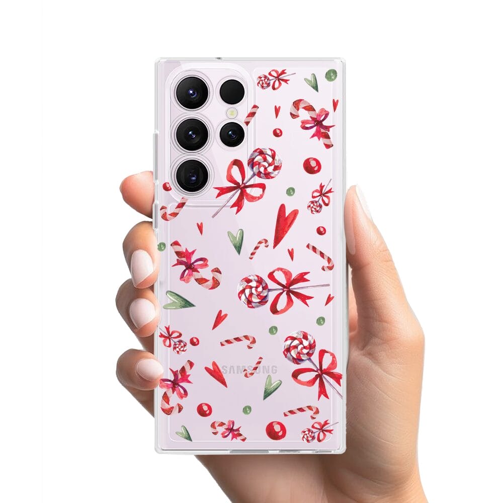 Etui do Samsung Galaxy S23 Ultra przeźroczyste, silikonowe Flexi, Cukierki świąteczne